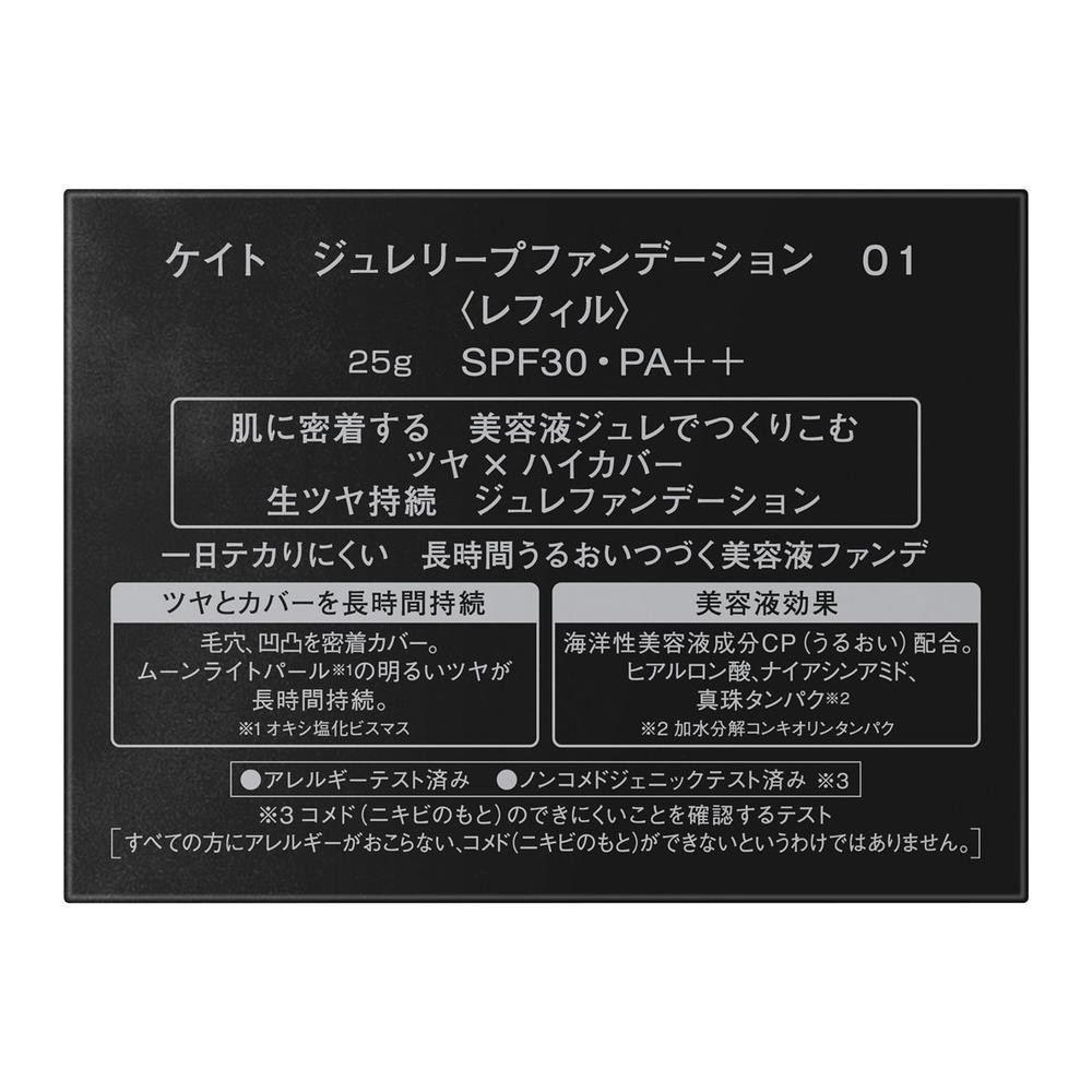 肌に密着する美容液ジュレでつくりこむ ツヤ×ハイカバー 生ツヤ持続ジュレファンデーション ●一日テカりにくい長時間うるおいつづく美容液ファンデ ●ツヤとカバーを長時間持続:毛穴、凹凸を密着カバー。ムーンライトパール※1の明るいツヤが長時間持続。 ●美容液効果:海洋性美容液成分CP(うるおい)配合。ヒアルロン酸、ナイアシンアミド、真珠タンパク※2 ●アレルギーテスト済み ●ノンコメドジェニックテスト済み※3 ※1オキシ塩化ビスマス ※2加水分解コンキオリンタンパク ※3コメド(ニキビのもと)のできにくいことを確認するテスト (すべての方にアレルギーがおこらない、コメド(ニキビのもと)ができないというわけではありません。)