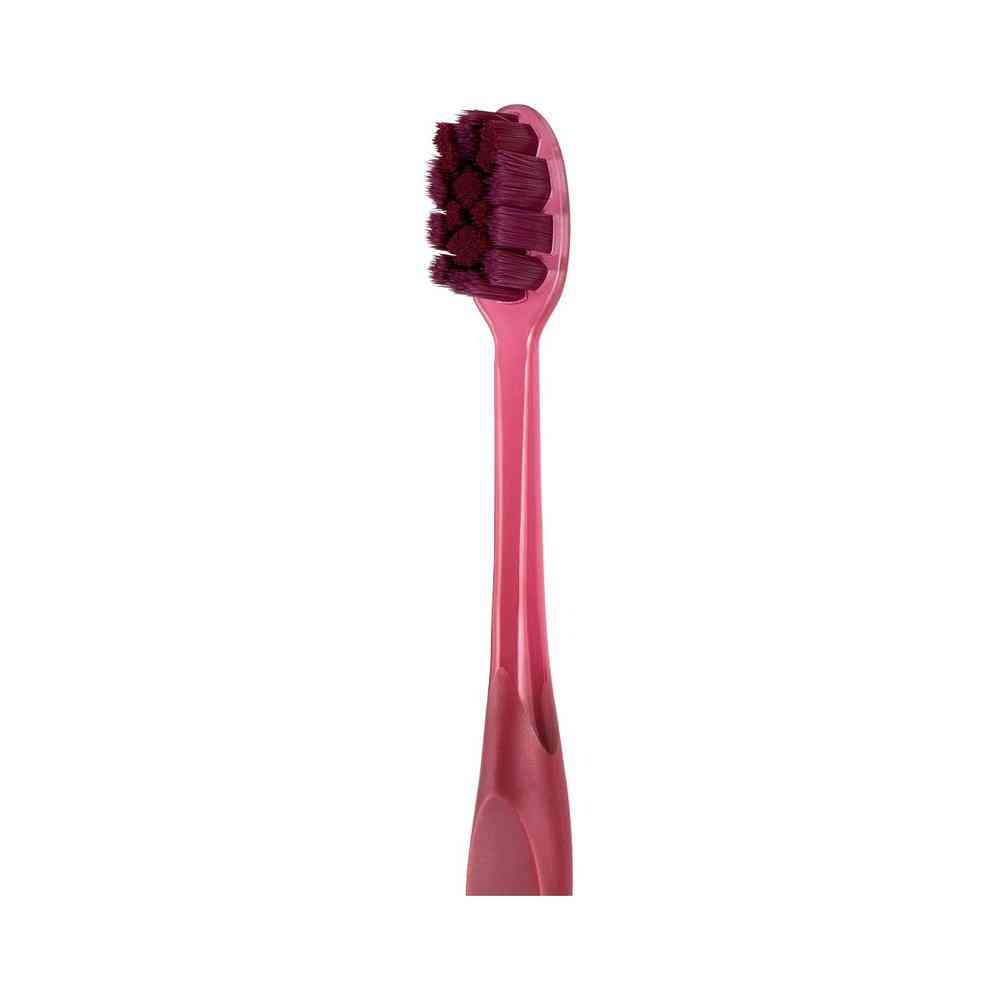 約5,000本(メーカー従来品の約3倍)の密毛設計。 今までの密毛ハブラシには無かった薄型ヘッドでお口のすみずみまでの磨きやすさを実現。 歯を包み込むような3D設計で優れた磨き心地を実現しました。 複数の角を持つ星型超極細毛と先端が丸いラウンド毛でコーヒーや紅茶などの着色汚れが落としやすくなっています。