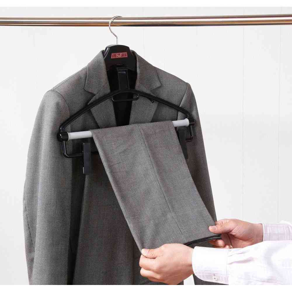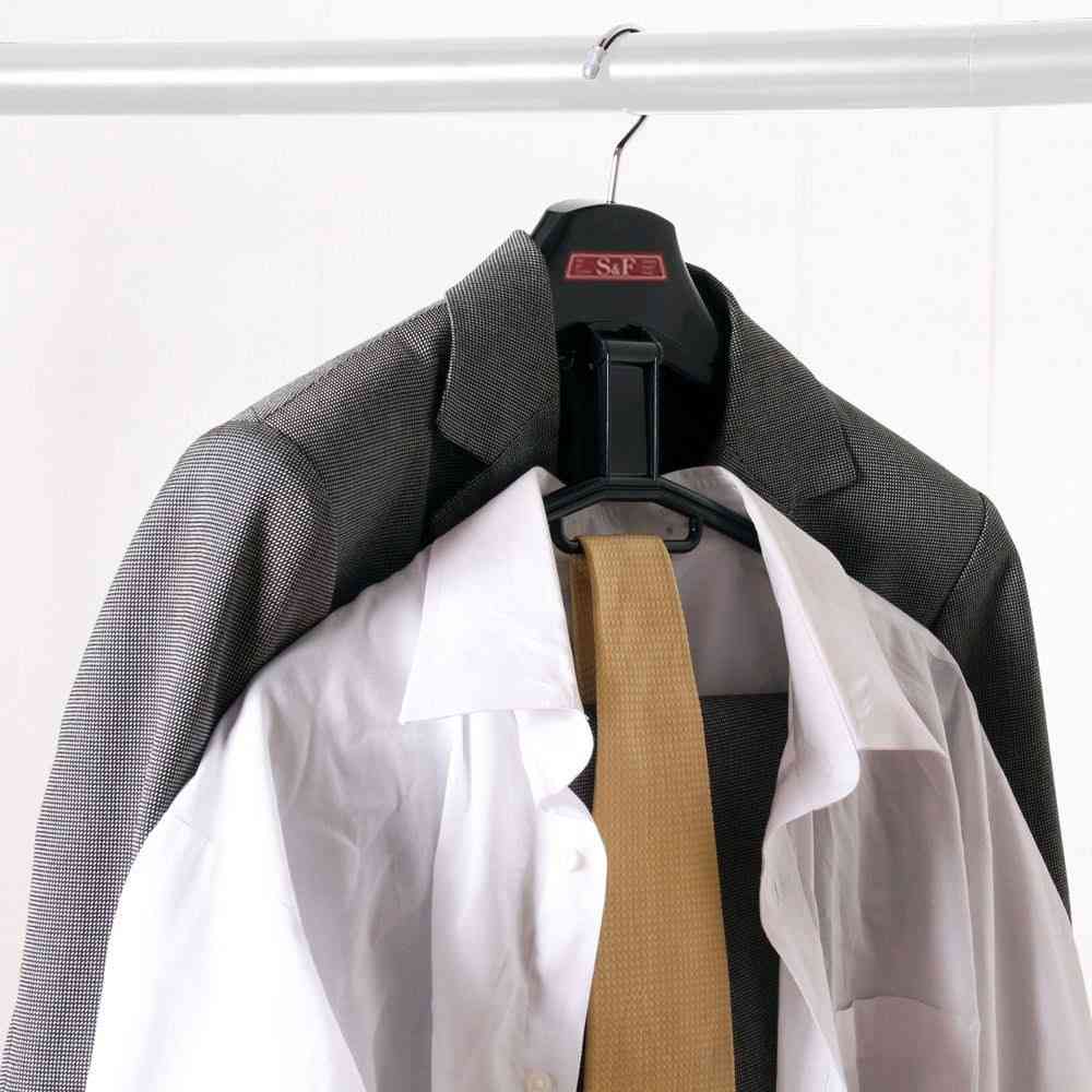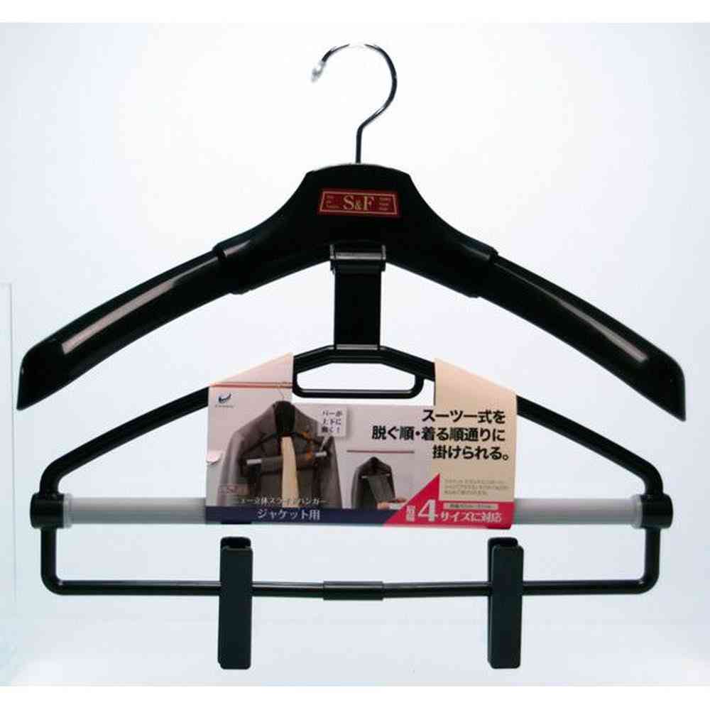 フック、回転、クローゼット、収納、省スペース、スカート、ボトムス、クリップ、スライド、肩幅、調節、シャツ、ワイシャツ、BK