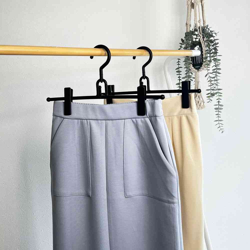 ハンガー、シワ防止、スカート、ボトムス、クリップ、すべり止め、スライド、調節、可動、薄型、連結、省スペース