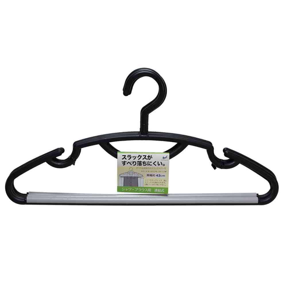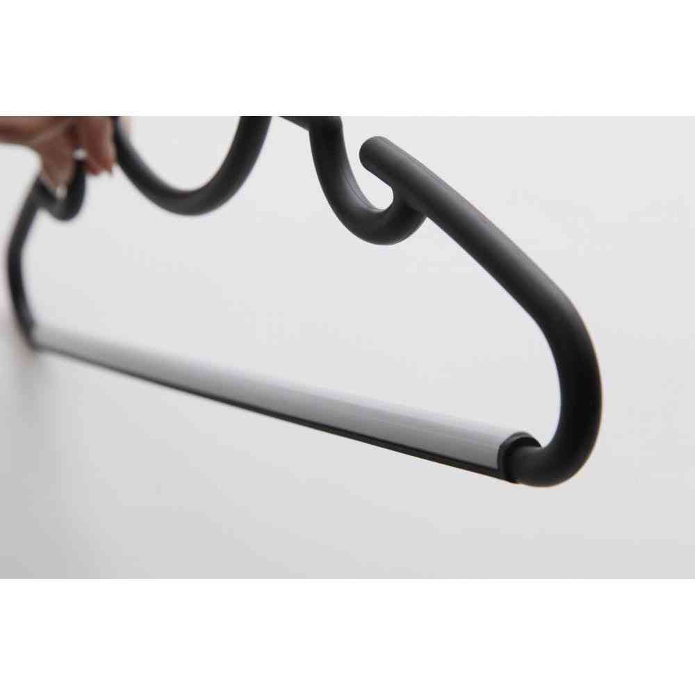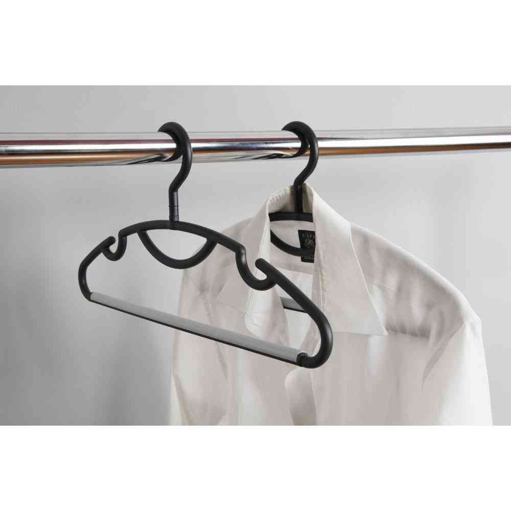 シャツやタンクトップなども掛けられます。 フック部分は360度回転し、簡単に向きを変えられます。 スラックスが落ちにくいラバー加工のストップバー。