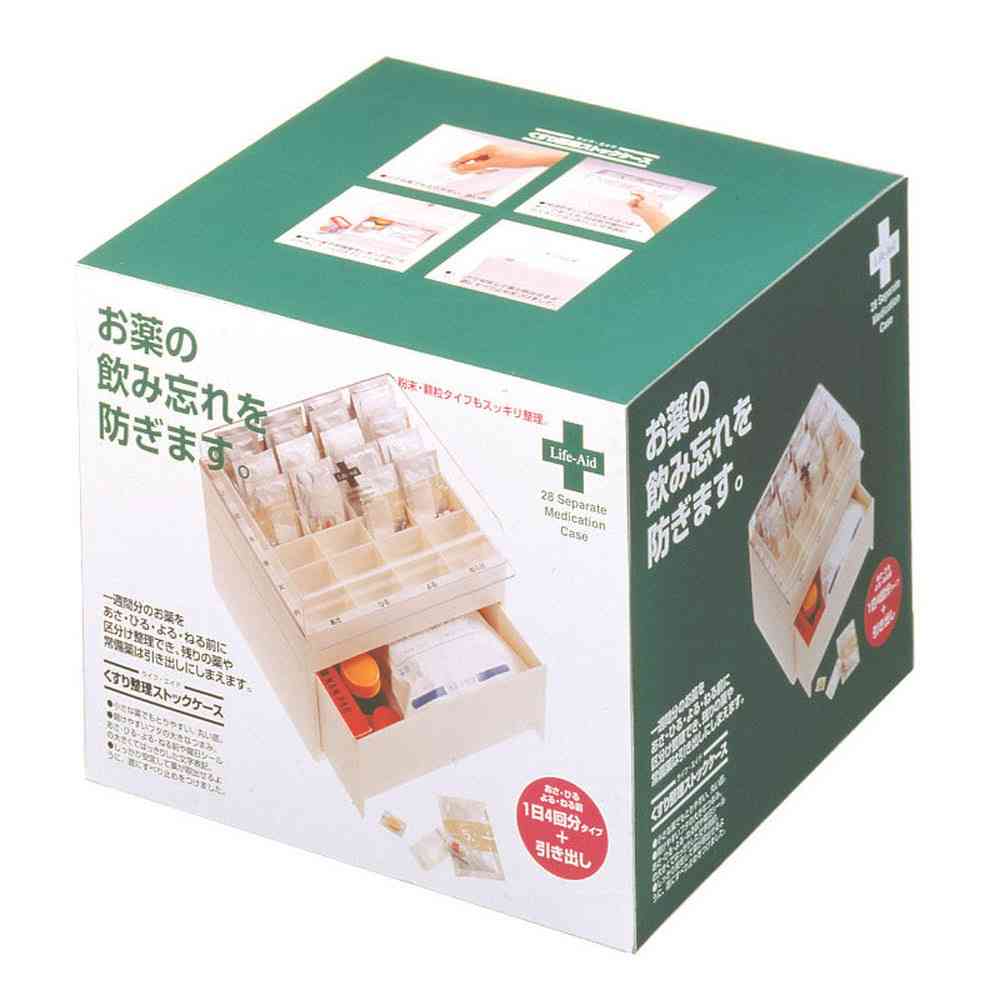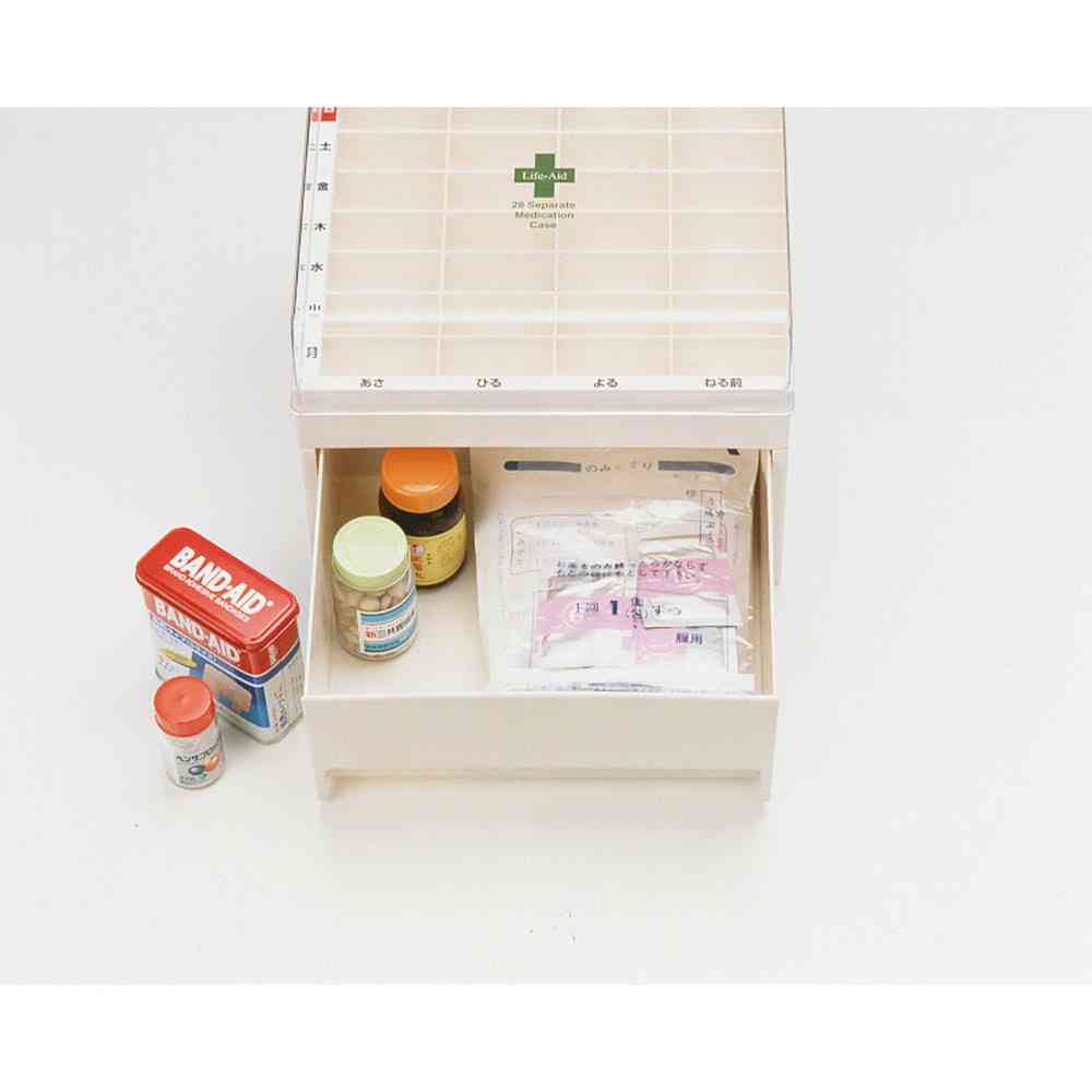 一週間、薬、整理、収納、朝、昼、夜、就寝前、服用、飲み忘れ、防止、粉薬、常備薬、ケース、錠剤、曜日