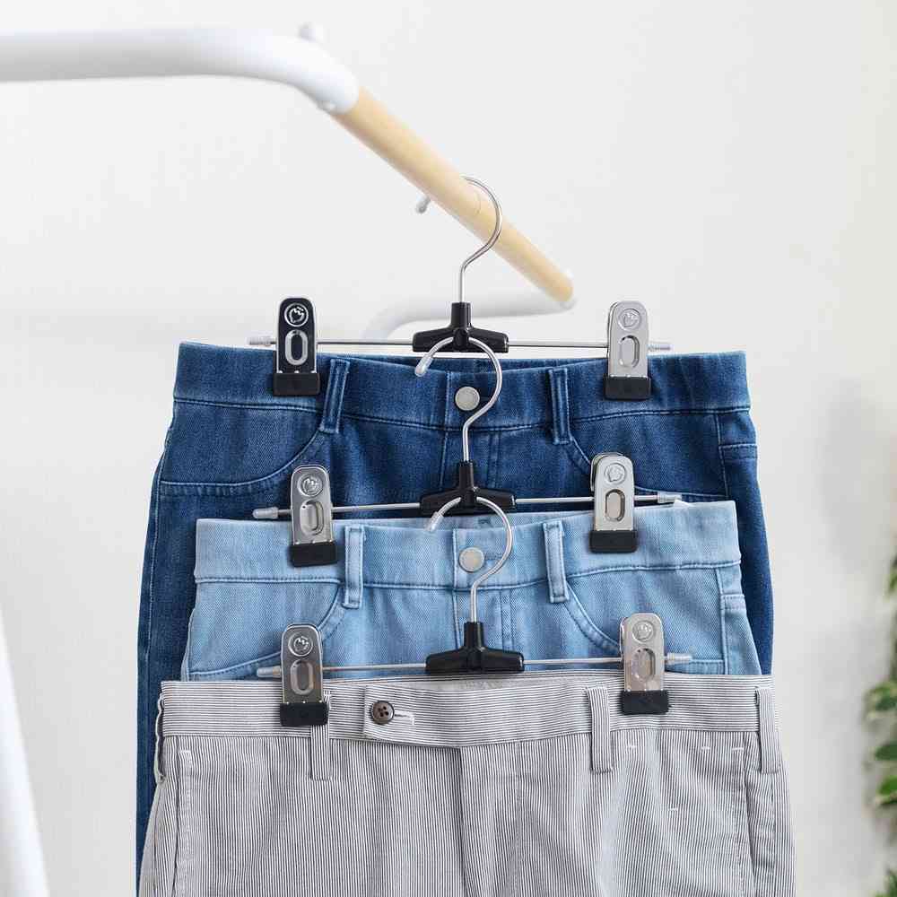 金属クリップでボトムをしっかり固定できる、連結式のスカート用クリップ付きハンガーです。 クリップの先端にはゴムのすべり止めがついて、スカートをしっかりキャッチします。 クリップ跡が残りにくいのも特長です。 縦に連結ができるので、クローゼットの収納スペースを効率よく活用できます。 フックは回転します。