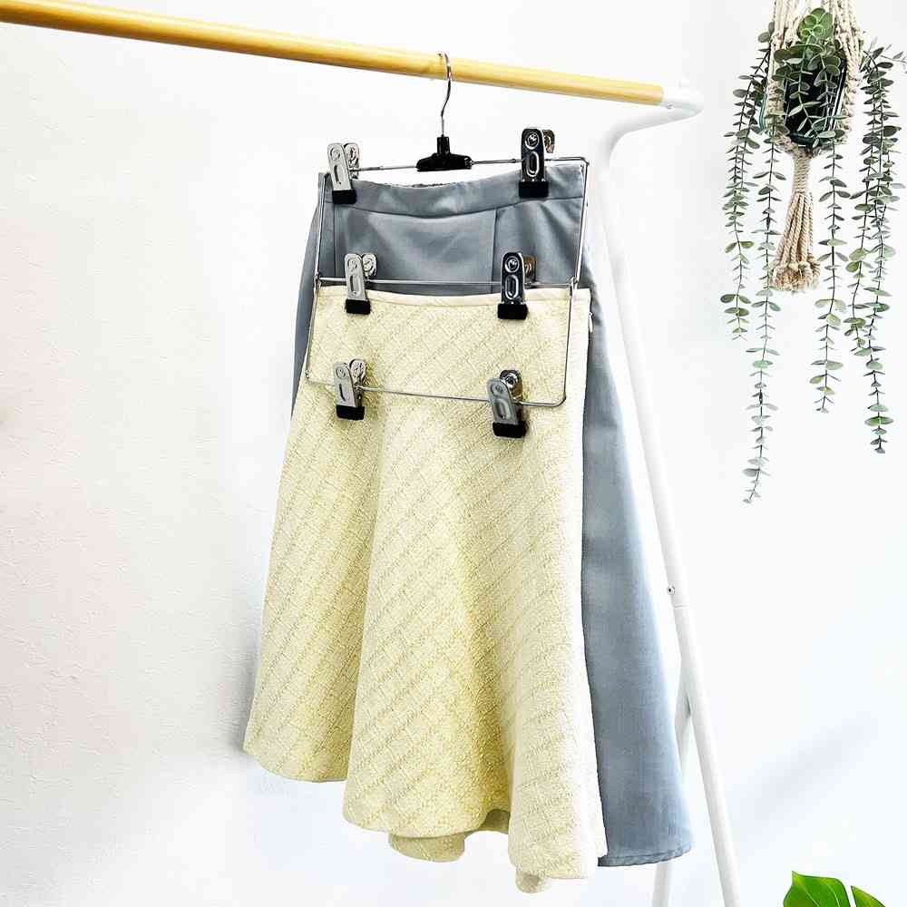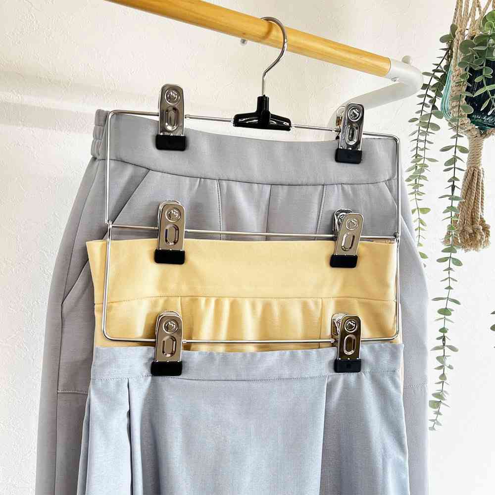 滑らない、スカート、クリップ、調節、省スペース、クローゼット、収納、洋服、3着