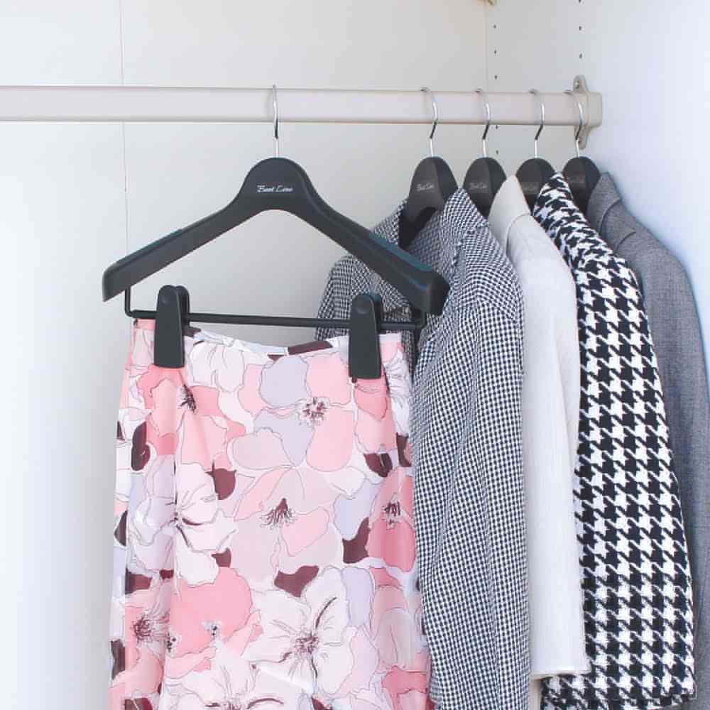 スーツ、形状、立体、ハンガー、クローゼット、型崩れ、防止、スラックス、ボトムス、男性、肩幅、大きめ、クリップ、スカート、BK