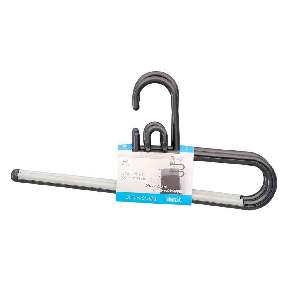 連結、省スペース、ハンガー、ボトムス、スラックス、収納、クローゼット、すべり止め、BK