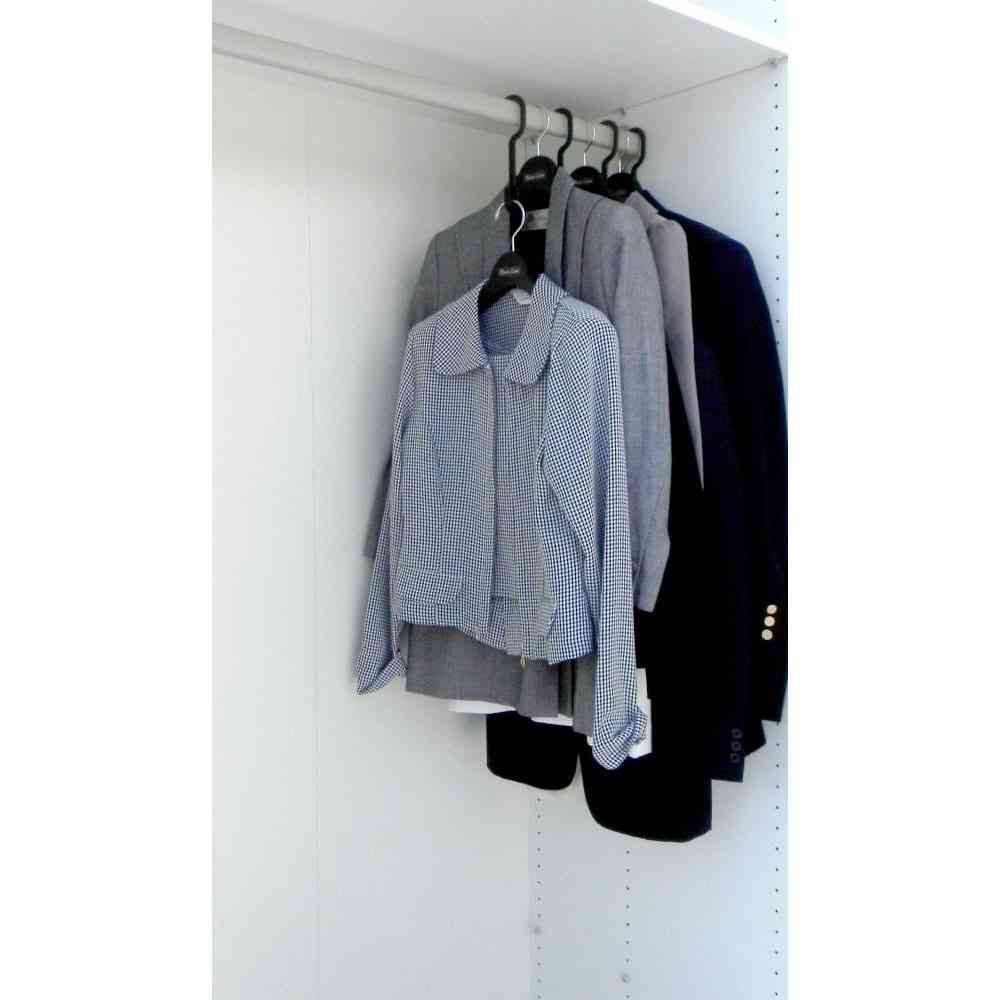 連結フックを使用し収納効率アップハンガーどうしを連結し掛ける事によって段差ができ収納率が上がる