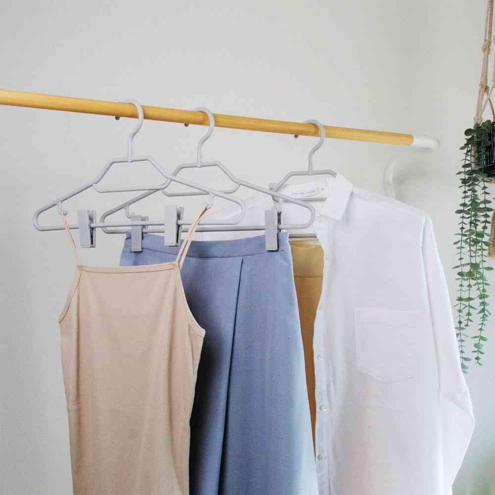 フック、回転、ハンガー、襟元、肩ひも、クリップ、スライド、調節、シャツ、ワイシャツ、収納、クローゼット、スカート、ボトムス、スラックス