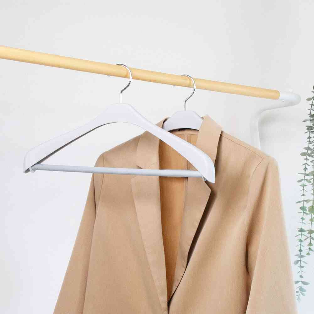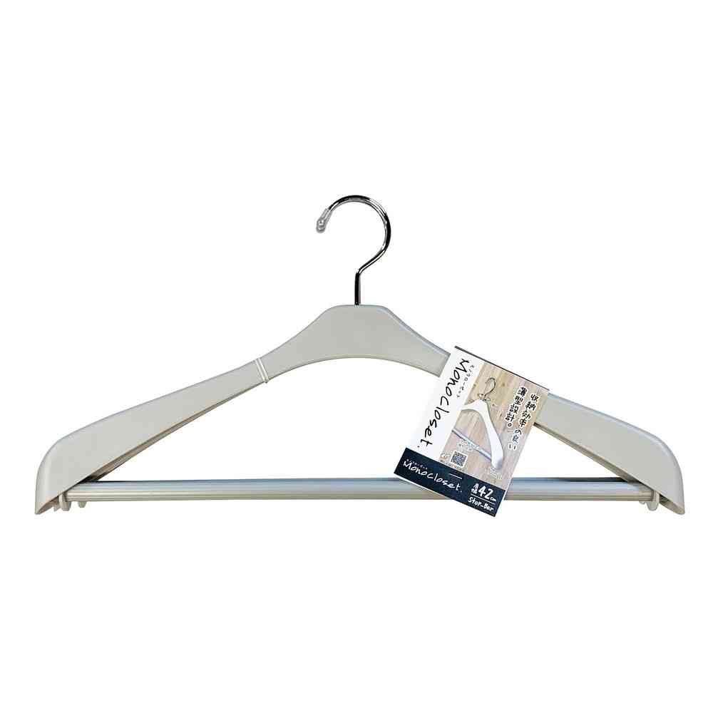 衣類収納をライフスタイルに合わせてトータルコーディネート。 服の形にフィットする、丸みのある形状。 ジャケットやスーツの型崩れを防ぎます。 滑り止めのストップバーは、スラックスなどを掛けた際にずり落ちを防ぎます。 フックは回転し、向きを変えられます。