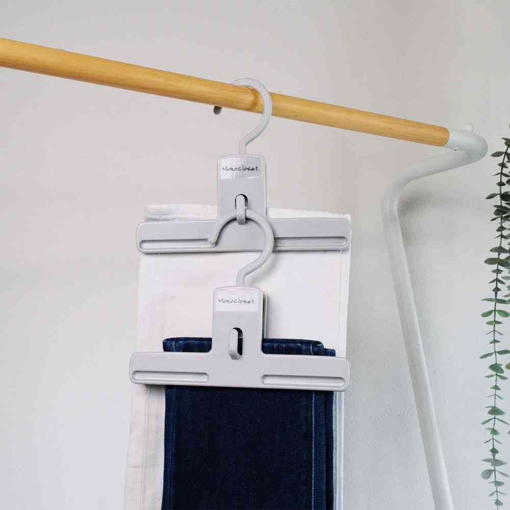 クローゼット、衣類、収納、クリップ、ボトムス、スカート、スラックス、連結、すべり止め、フック、回転、省スペース、GY