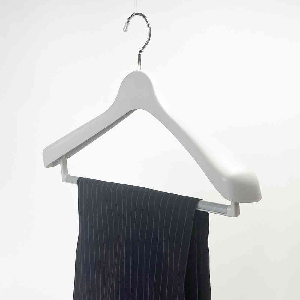 しっかりした立体フォルムのハンガーラバー加工のストップバーがボトムをしっかりキープ