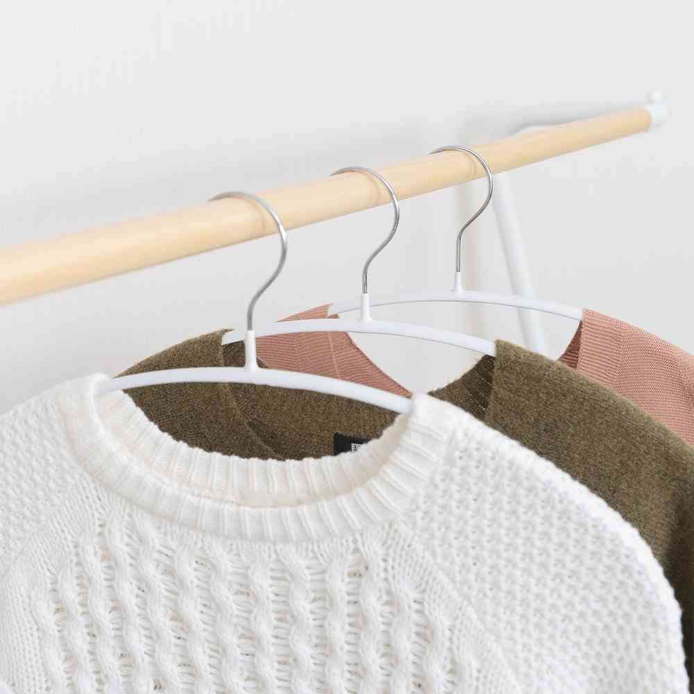 ニットウェアにも良いアーチ形状のハンガー。 ラバー加工で落ちやすい衣類にも対応しています。