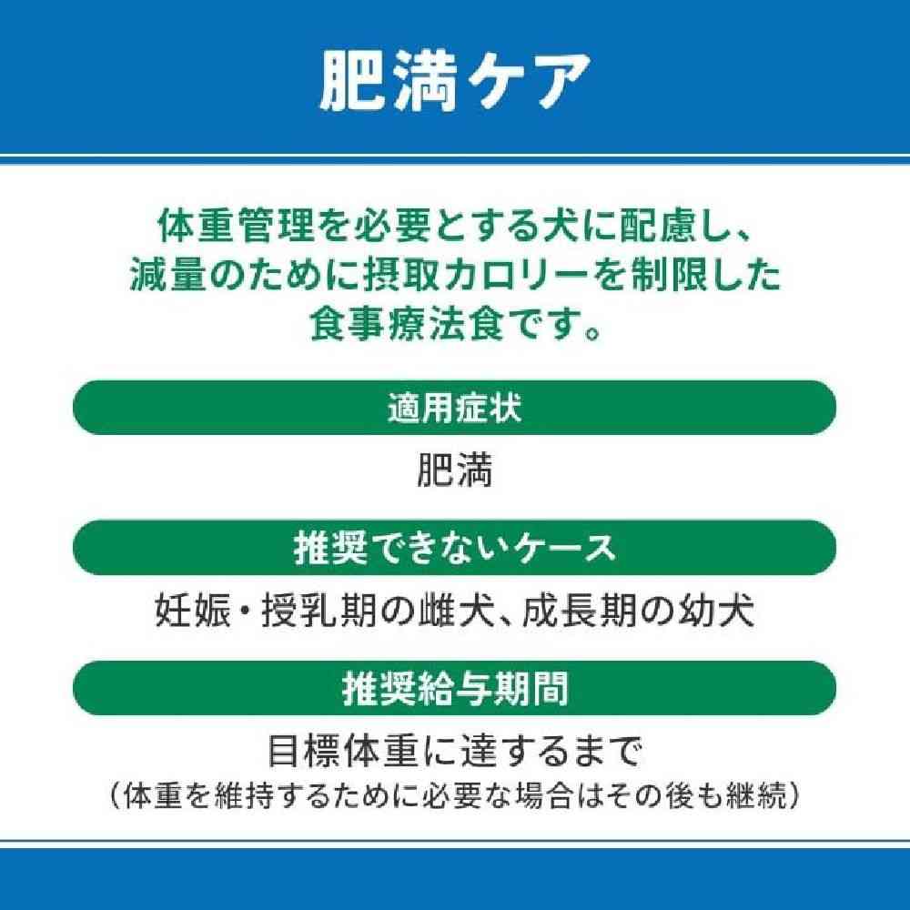 体重管理を必要とする犬に配慮し、減量のために摂取カロリーを制限した食事療法食