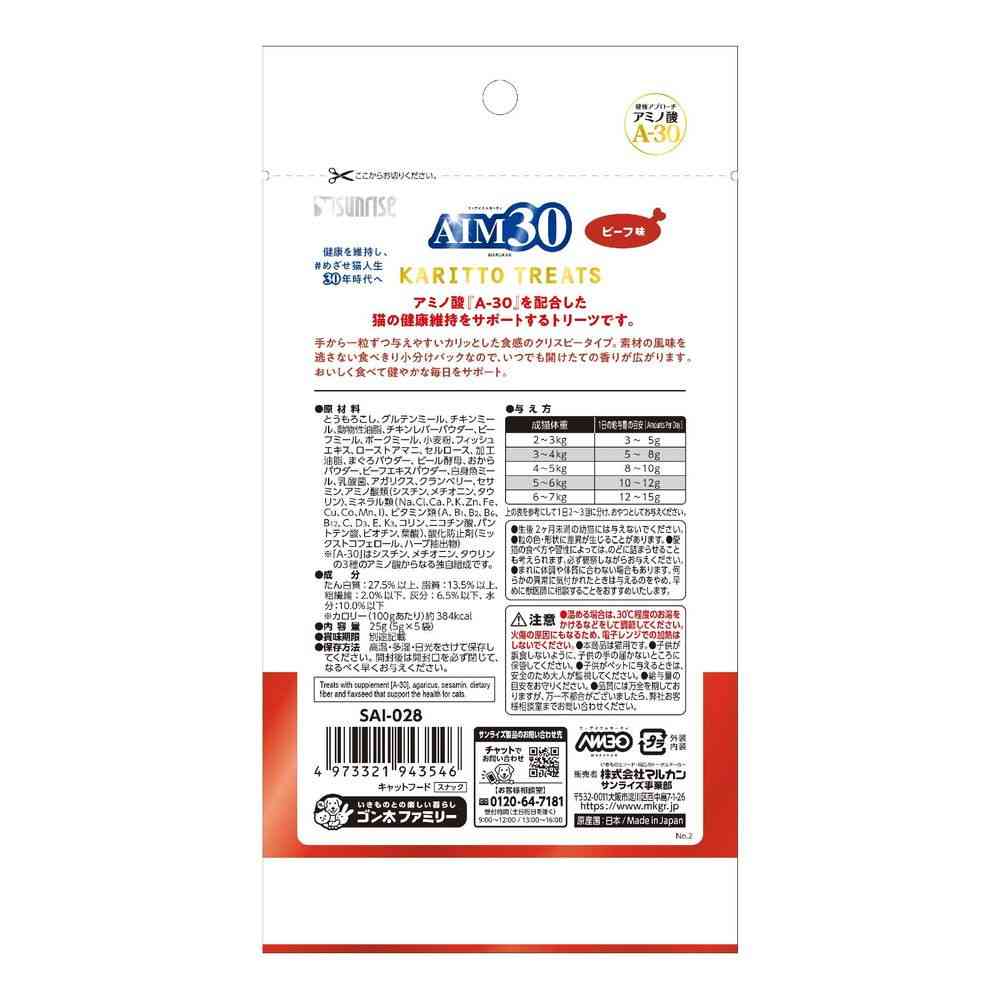 - > マルカン AIM30 カリッとトリーツ ビーフ味 5g×5袋