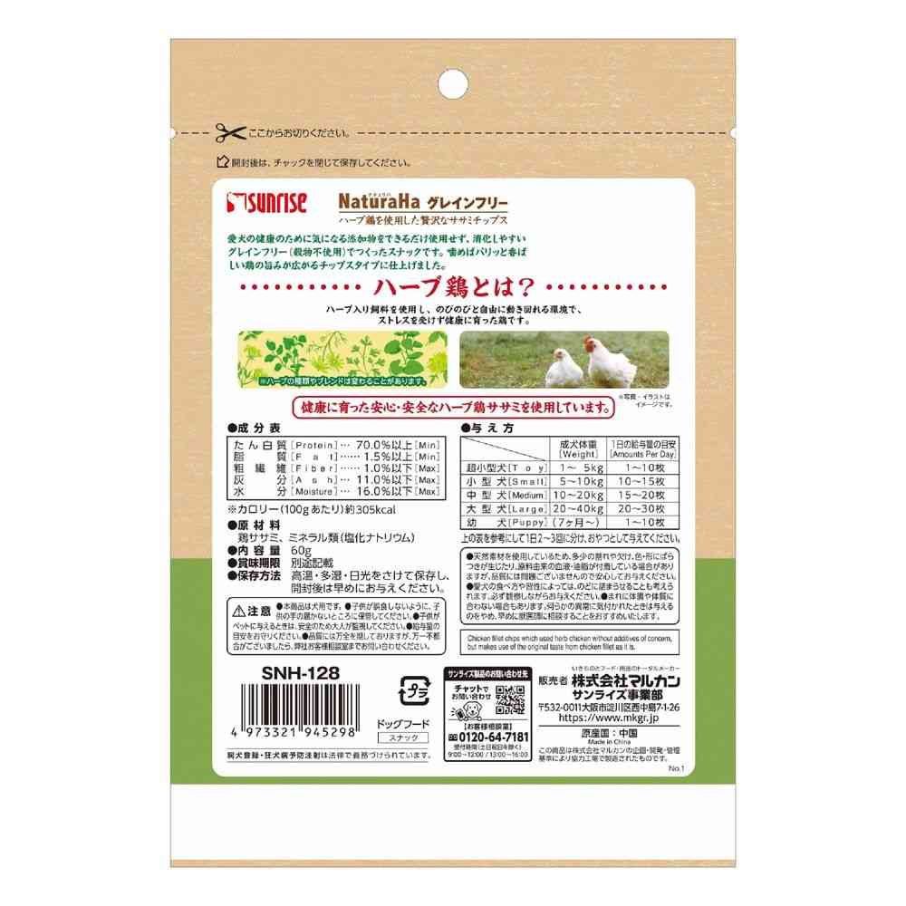 愛犬の健康のために気になる添加物をできるだけ使用せず、消化しやすいグレインフリー(穀物不使用)でつくったスナックです。 噛めばパリッと香ばしい鶏の旨みが広がるチップスタイプに仕上げました。 【給与量の目安】超小型犬:1~10枚小型犬:10~15枚中型犬:15~20枚大型犬:20~30枚幼犬:1~10枚