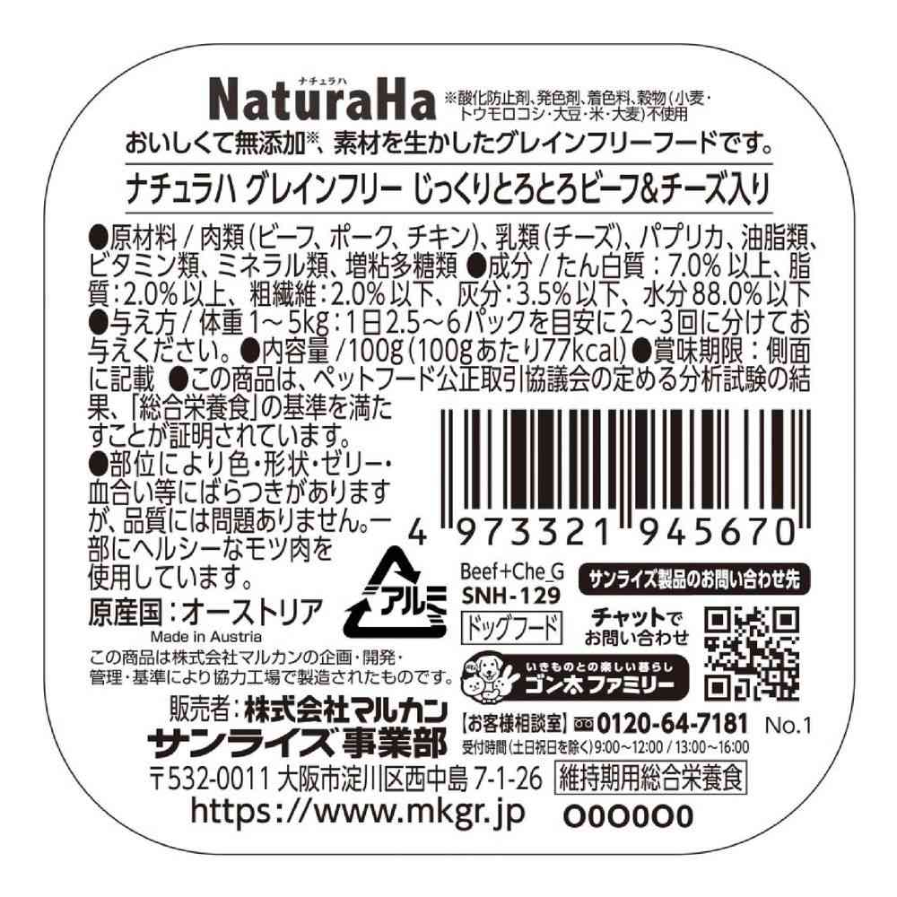 【原材料】肉類(ビーフ、ポーク、チキン)、乳類(チーズ)、パプリカ、油脂類、ビタミン類、ミネラル類、増粘多糖類【成分】たん白質・・・7.0%以上、脂質・・・2.0%以上、粗繊維・・・2.0%以下、灰分・・・3.5%以下、水分・・・88.0%以下