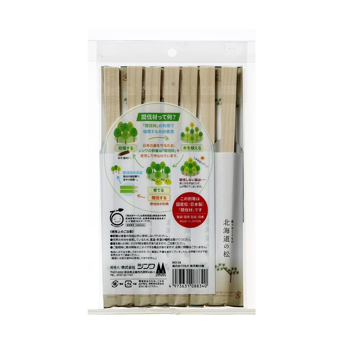 北海道産 松材(間伐材)を使ってできたお箸。 間伐材を使うことで山を守り成長させることで環境促進につながります