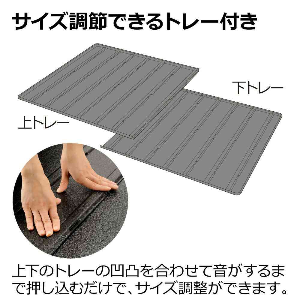 外寸:90~154×60×60Hcm トレーセット時:94~158×62.5×61Hcm 内寸:86~150×50cm 扉間口:27×47cm 側面間口:52×23cm 調節可能幅:90~154cm(11段階) 製品重量:14.4kg