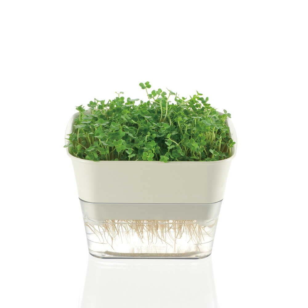 初めての菜園にピッタリ。 水だけでお手軽栽培。室内で栽培できるから、完全無農薬。 安心の採れたて野菜が楽しめます。 栽培部と貯水部が分かれているので、水替えがラクにできます。 水の残量がわかりやすいクリア仕様。