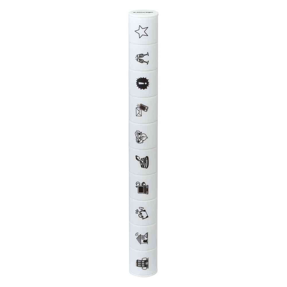 ビジネスや暮らしの中で便利に使えるアイコンをスタンプにしました。 ペンケースに入れて持ち歩けるサイズで、10種類を1本にセット。 水性ペンなど塗ってもにじみにくく、スケジュール帳やノートを楽しく整えられます。