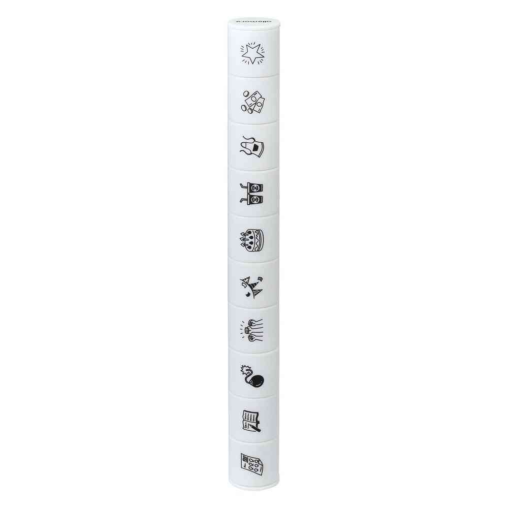 ビジネスや暮らしの中で便利に使えるアイコンをスタンプにしました。 ペンケースに入れて持ち歩けるサイズで、10種類を1本にセット。 水性ペンなど塗ってもにじみにくく、スケジュール帳やノートを楽しく整えられます。