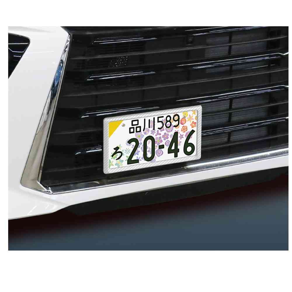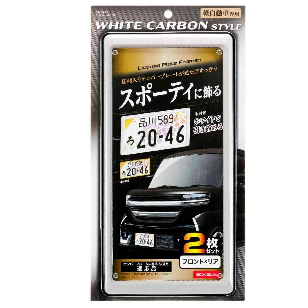 ●ホワイトカーボンでスタイリッシュに演出するドレスアップ用ナンバーフレームです。 ●軽自動車の図柄入りナンパープレートの黄色枠が目立たなくなります。 ●ナンバープレートを曲がり、歪みから保護します。 ●軽自動車専用の前後セットです。