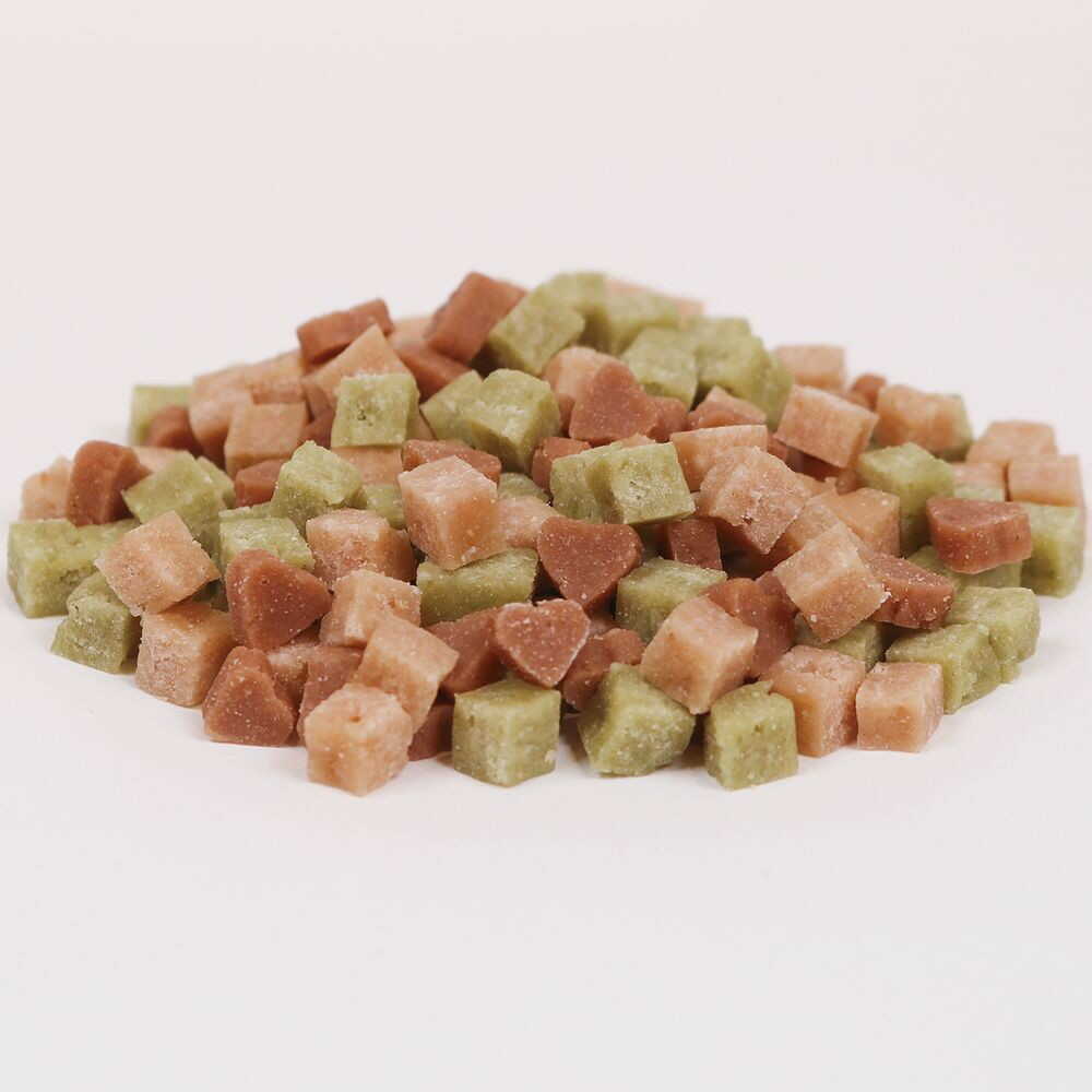匂いと食感で肉の旨みをより感じられる、やわらかいセミモイスト、半生小粒タイプのドッグフード。