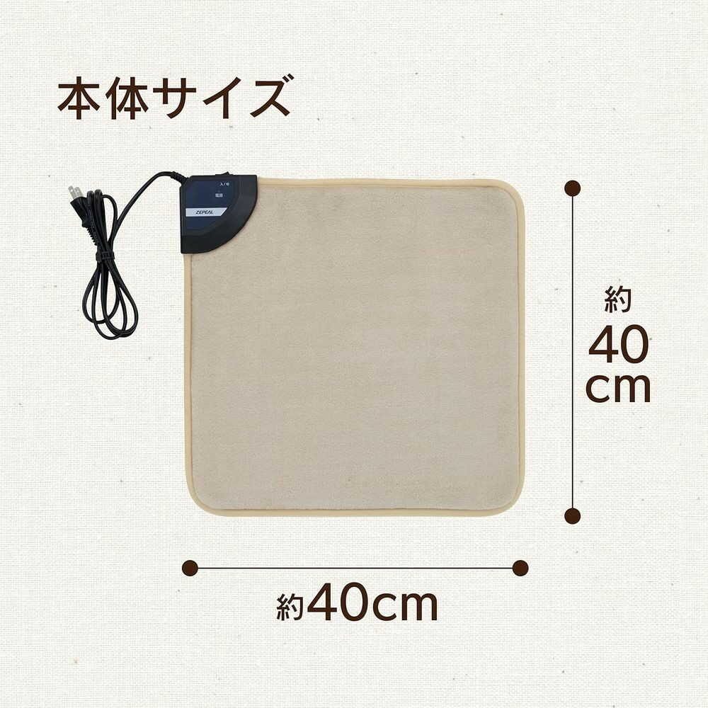 ●40×40cmのコンパクトサイズで用途多彩 ●やわらかな肌触りのフランネル素材を採用 ●過熱防止機能が搭載されており、安全設計