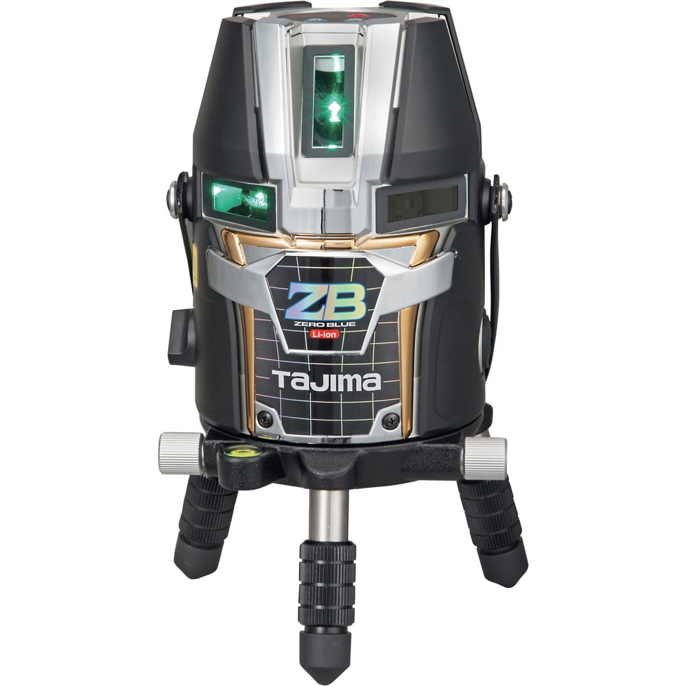 ●鮮視度300のギラつかないブルーグリーンレーザーです。●精密な地墨合わせができる360°回転微調整機能付です。●ジンバル式レーザーです。●専用リチウムイオン充電池7424を使用します。●縦ライン3本使用時の連続使用時間、セーブモード約20h・ジャストモード約14hです。●※使用条件・使用方法により異なります。●レーザー光30秒間点滅後、レーザーが消灯します。●ラインLED のみ点滅です。●別売ACアダプター対応です。●(品番:ADP-9V13)●縦(mm):208●横(mm):126●精度:±1mm/7.5m以内●自動補正範囲:±2°●電源:リチウムイオン充電池7424●保護等級:防塵・防水設計●照射ライン:縦ライン2本・横ライン正面・下部ポイント●光源:可視光半導体レーザー●波長(nm):ライン505/ポイント650●レーザー安全規格:クラス2M●直角精度:90°±(2mm/7.5m)●色:緑●種類:グリーンレーザー●波長:ライン505nm・ポイント650nm●鮮視度:セーブモード150・ジャストモード300●照射ライン精度:10mで±0.81mm以内 質量1280g