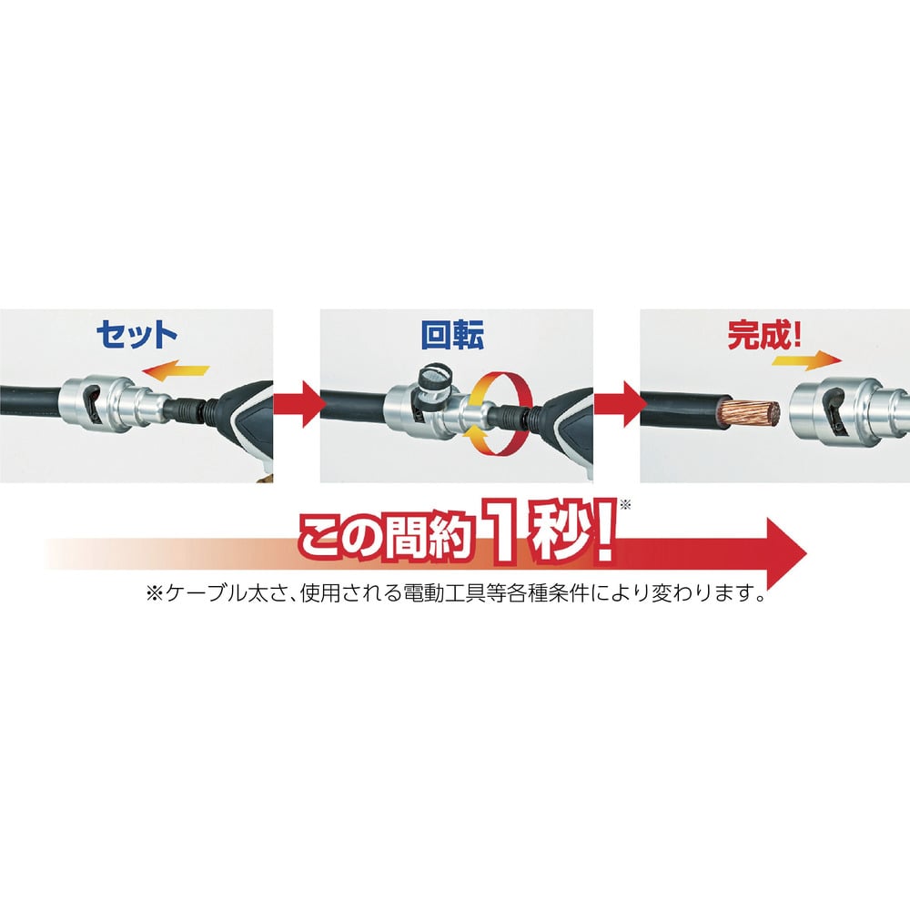 ●充電ドライバーにセットしてCVケーブルを差し込み回転させるだけで被覆が剥けます。●誰でも簡単、しかも精度は一定です。●ラチェットドライバーハンドルに装着し手回しでも使用可能です。●硬いCTV線が約1秒で剥ける、ソケット型のケーブルストリッパーです。●適合電線([[MM2]]):14/22/38/60/100/150/200/250/325●全長(mm):305●適合電線:CV単芯、CVT、エコケーブル用●ストリッピング能力(mm):15(10~33)/17(12~35)/18(13~36)/25(18~33)/26(19~34)/34(27~42)/40(33~48)/43(36~51)●ストリップ長(mm):15(10~33)/17(12~35)/18(13~36)/25(18~33)/26(19~34)/34(27~42)/40(33~48)/43(36~51)●セット内容:DK-MS14CL、DK-MS22CL、DK-MS38CL、DK-MS60CL、DK-MS100CL、DK-MS150CL、DK-MS200CL、DK-MS250CL、DK-MS325CL 質量2800g