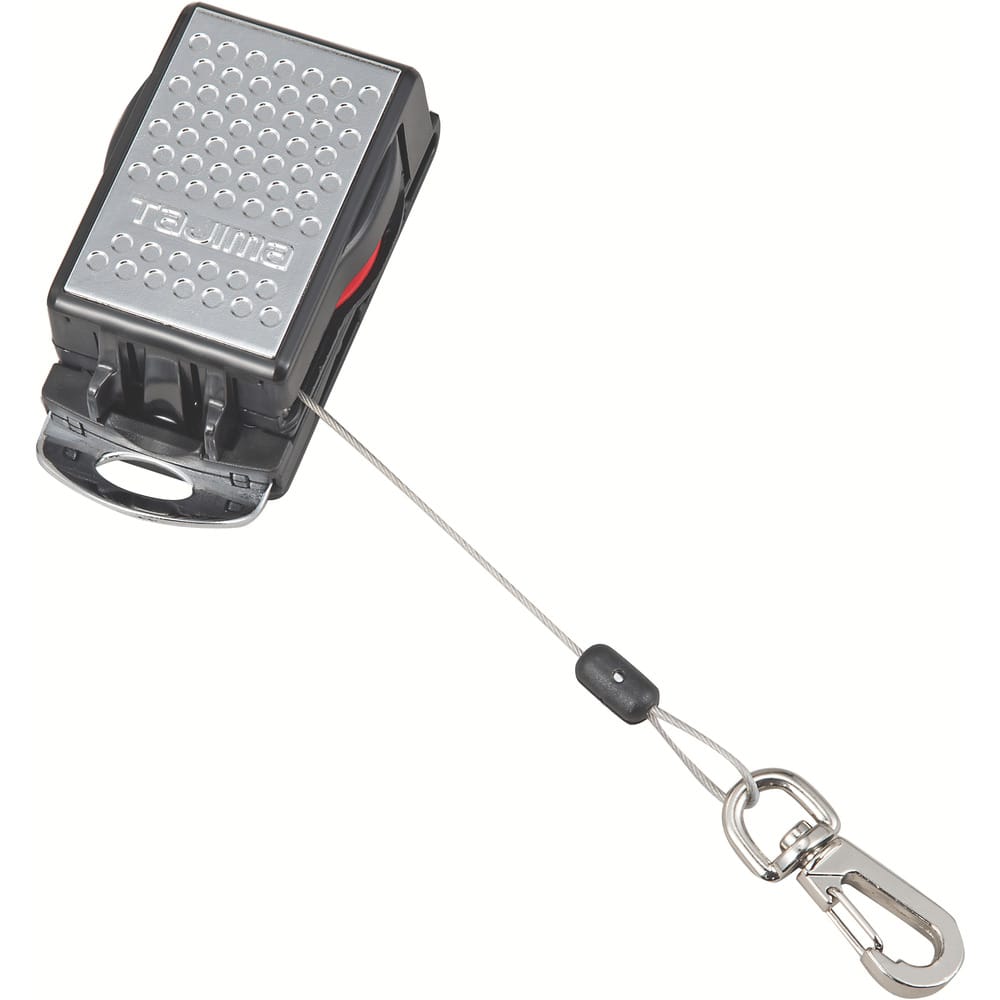 ●自動巻き取り式だから腰まわりがすっきりです。●工具を仮置きできる簡易工具ホルダー機構です。●万一、工具を落下させても本体に内蔵されたバネが衝撃を吸収し工具の跳ね返りを防止します。●金属ワイヤー使用、火や熱に強く、耐摩擦・耐切断に優れます。●ベルトの取付け位置に応じて引出し方向の左右を簡単に切り替え可能です。●自動巻取式だから腰まわりがすっきりします。●幅(mm):50●色:黒/銀●最大長さ(mm):1200●使用最大荷重(kg):1.0●自然長(mm):120●コード径(mm):45●芯径(mm):2 質量137g