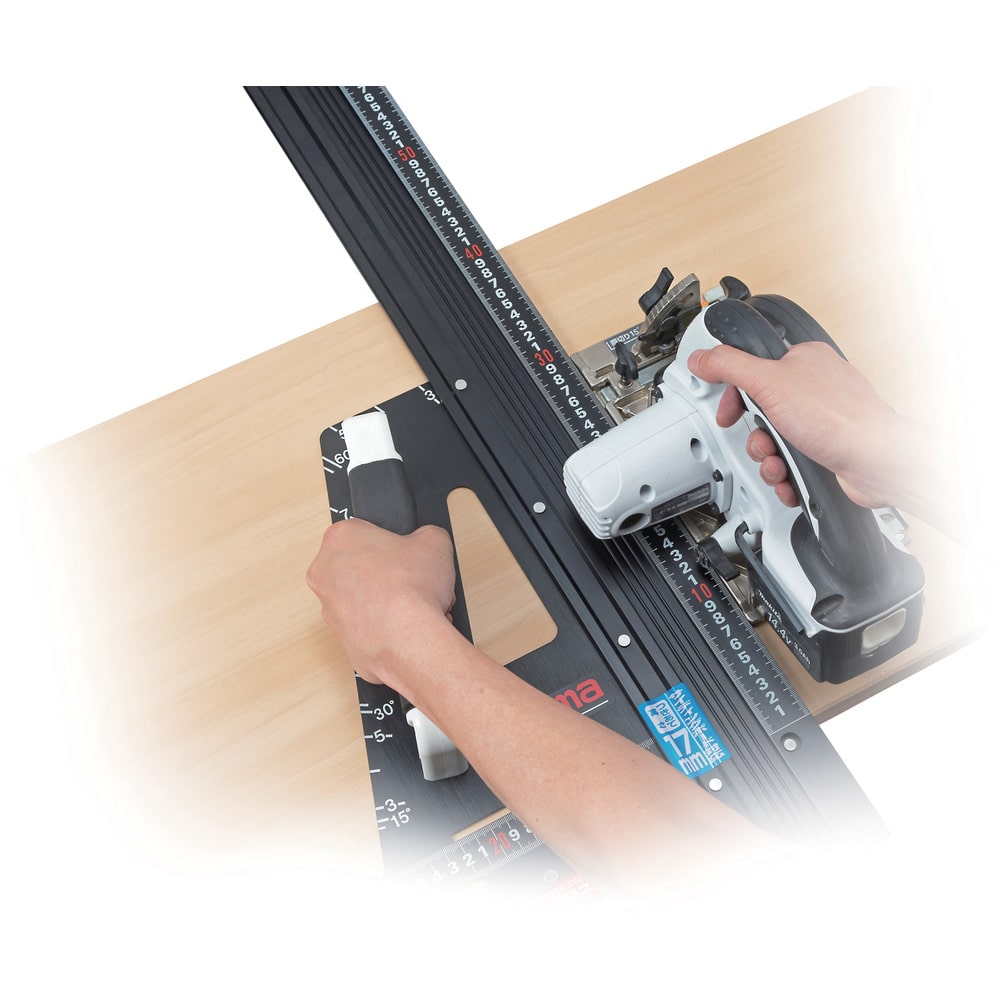 ●丸鋸ピッチ、ボードの割付が簡単にできるボード割付マーク付横目盛です。●簡易的に角度や勾配を確認できる勾配目盛です。●仕舞切りに便利な角度微調整機構を搭載しています。●軽くて丈夫な高精度アルミを採用しています。●底面に滑り止めゴムを埋め込み配置しています。●しっかり押さえられ、滑りにくい新形状グリップです。●3種のビス(100/150/200)を簡単にマークできるビスピッチ目盛です。●石膏ボードに対応した9mmのつきあてを採用しました。●サイディングなど多様なボードに対応した17mmのつきあてを採用しています。●全長(mm):622●幅(mm):310●厚さ(mm):83●呼び寸法(mm):450●有効切断長さ(mm):450●角度精度:450mmにつき±0.45以内●目盛:見やすい継目盛、紅白目盛●直角精度:450mmにつき±0.45以内 質量1.15kg