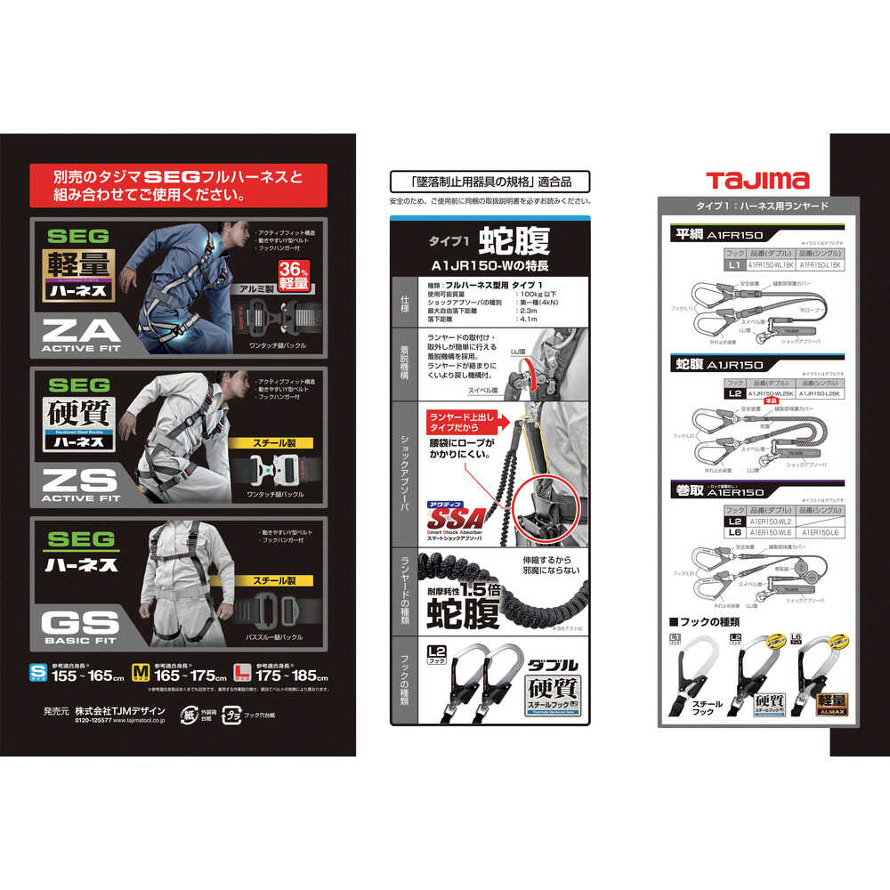 ●短くなるので邪魔にならない蛇腹式です。●フルハーネス型用 タイプ1です。●上出しダブルL2ランヤードだから腰周りの邪魔になりにくいです。●ショックアブゾーバがブラブラしない固定ベルト付きです。●より戻し付です。●最大使用可能質量(kg):100●幅(mm):16.5●長さ(mm):1500●フック口開き(mm)人体側:9●フック口開き(mm)構造物側:55●色:黒●フックタイプ:L2(高耐久スチール/より戻し)●タイプ:ダブル●ランヤード寸法幅(mm):16.5●ランヤード寸法長さ(mm):1500●厚生労働省「墜落制止用器具の規格」規格品●ランヤード種別:タイプ1●種類:フルハーネス型●ショックアブゾーバ種別:第一種(4kN)●最大自由落下距離:2.3m 質量1700g