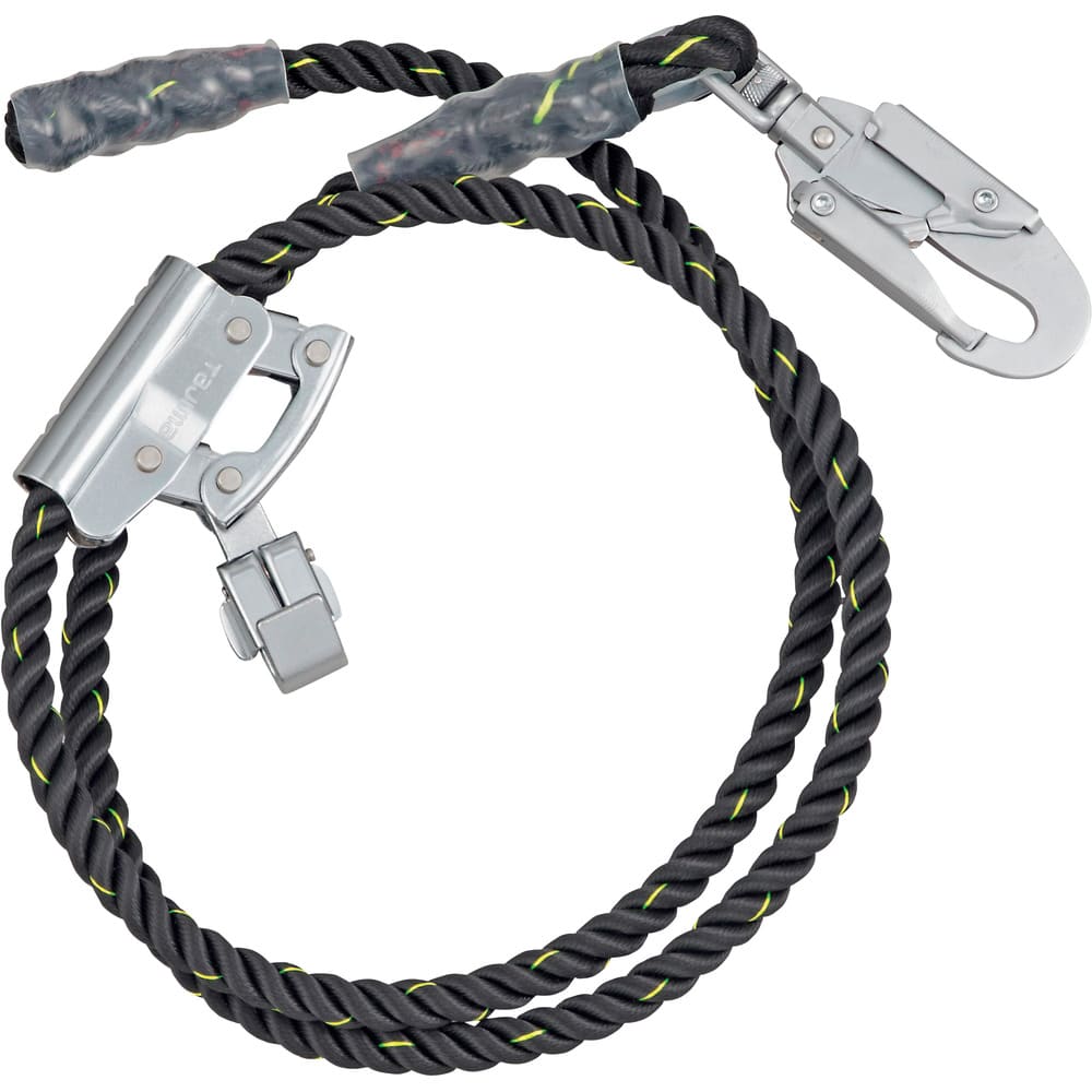 ●極太16mm黒ロープを採用しました。●ロープ長さ2100mmです。●ロープがよじれにくいより戻し付フックを採用しました。●長さ調節がしやすい大型グリップの伸縮調節器を採用しました。●径(mm):16●長さ(mm):2100●フック口開き(mm)人体側:フック:1.3、伸縮調節器側:1.1●ランヤード寸法幅(mm):16●ランヤード寸法長さ(mm):2100●色:黒●ロープ長さ:2100mm 質量1280g