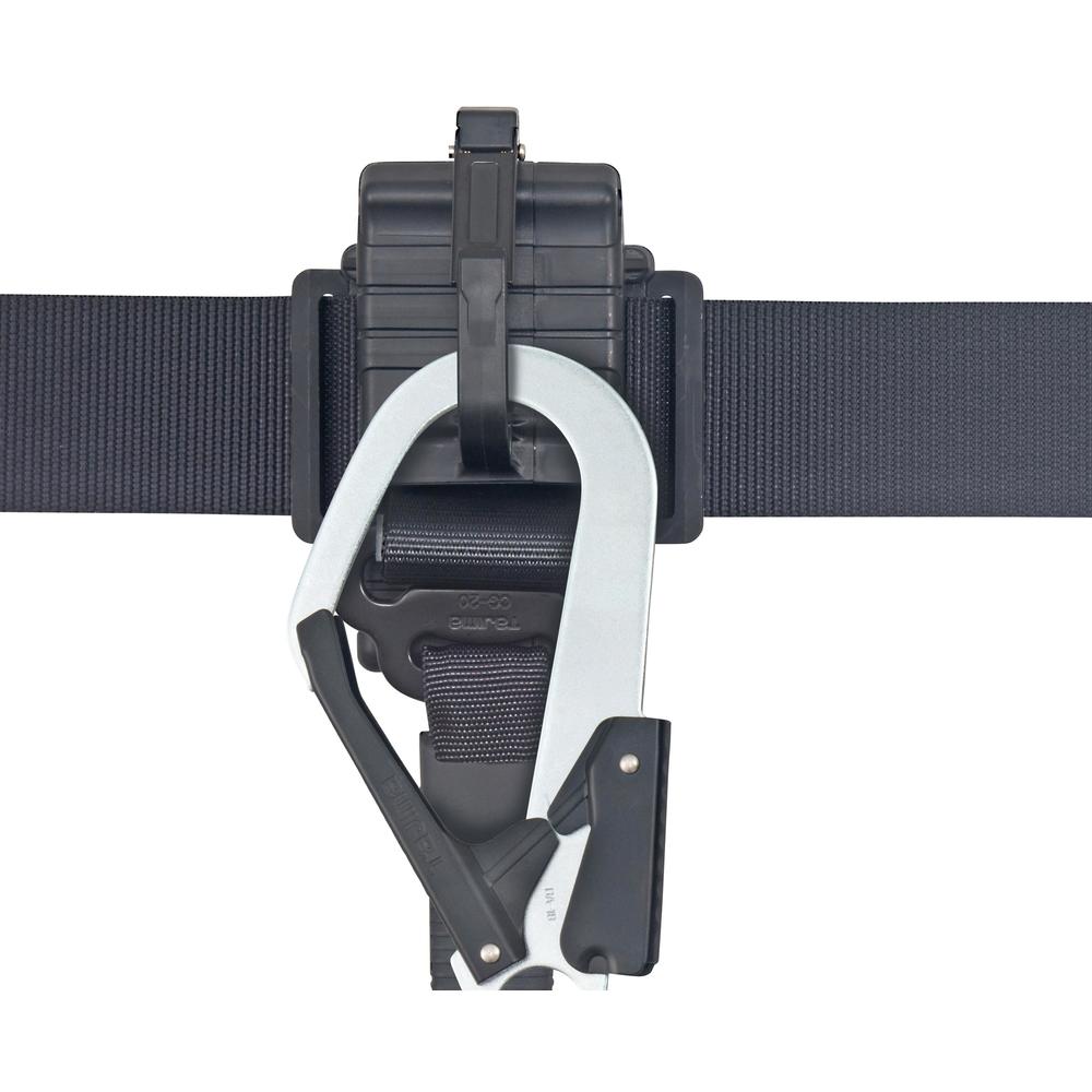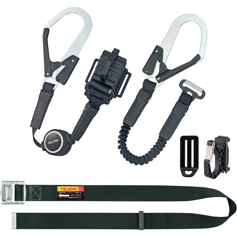 ●フック掛け替え時の無胴綱状態を防止する補助ロープ付です。●作業の邪魔にならない両側巻取式を採用した超小型巻取式(ロック機能なし)です。●装着スペース10cmの省スペース縦型ショックアブソーバを採用しています。●フックは耐久性の高いスチールフック(L1フック)です。●胴ベルトは革手袋でも操作が簡単なスチールワンフィンガーバックルです。●色:黒●フック口開き(mm)構造物側:55●フックタイプ:L1(高耐久スチール)●最大使用可能質量(kg):100●長さ(mm):1500●フック:L1(高耐久スチール)●胴ベルト幅×長さ(mm):50×1450●ランヤード寸法幅(mm):16.5●ランヤード寸法長さ(mm):1500●種類:胴ベルト型(胴ベルト+胴ベルト用ランヤード)●●落下距離(m):3.1●種類:胴ベルト型(胴ベルト+胴ベルト用ランヤード)●ショックアブソーバ種別:第一種(4kN)●最大自由落下距離:1.8m●落下距離:3.1m 質量1830g