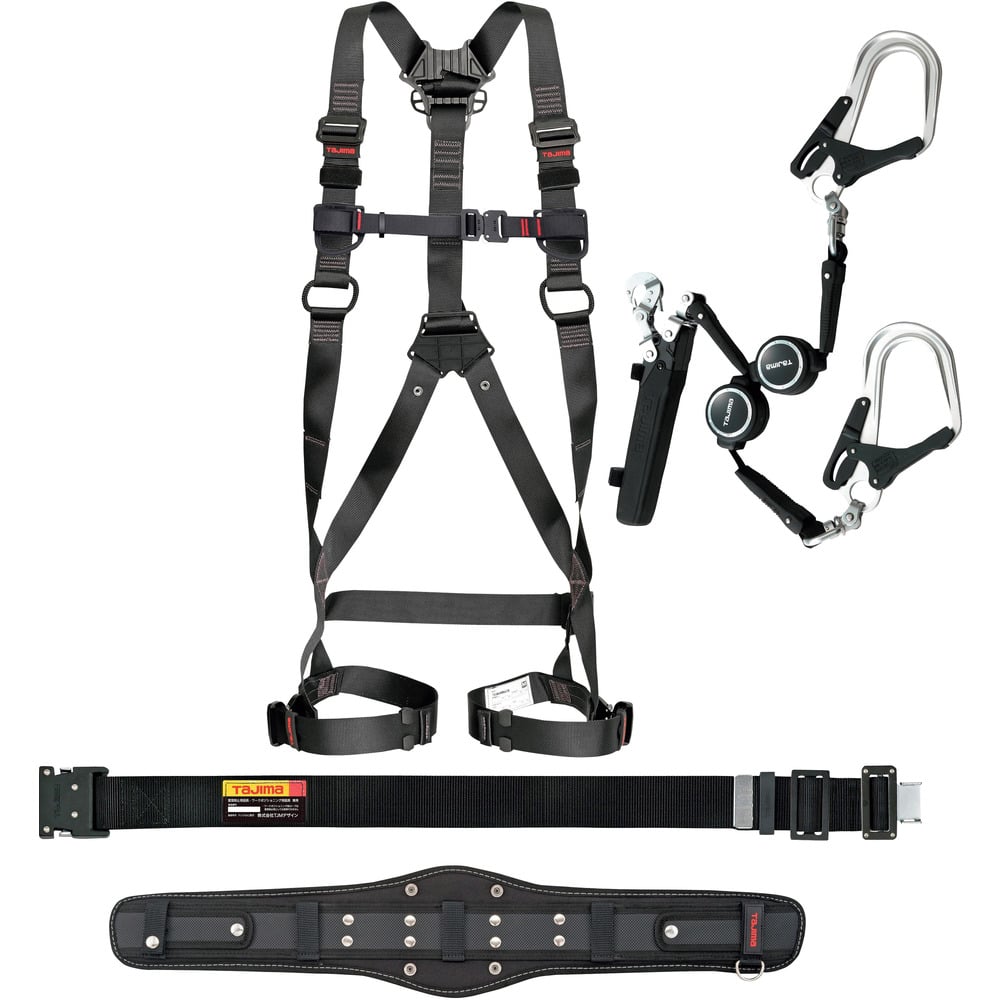 ●新規格対応SEGハーネス組み合わせセットです。●軽量アルミ製バックルのフルハーネスZA、フックハンガー付き仕様です。●手元が軽い275g、ハーネス用ER150ダブル L8フックランヤードです。●へたりにくくフィット感抜群の超立体ダブルクッション胴当てベルトです。●簡単ワンタッチ着脱式、アルミ黒バックルの胴ベルトです。●LEDセフ着脱式SF351Dと肩パットUS 背中パット付きです。●サイズ:M●色:黒●腿バックル:ワンタッチ●胴ベルト幅×長さ(mm):50×1250●ベルト幅(mm):50●フック口開き(mm):50●最大使用可能質量(kg):100●ランヤード寸法幅(mm):17.5●ランヤード寸法長さ(mm):1500●ランヤード種別:タイプ1●背中ベルト:Y型●腿ベルト::水平型●落下距離(m):4.1●厚生労働省「墜落制止用器具の規格」適合品●ランヤード種別:タイプ1●第一種ショックアブソーバー付●背中ベルト:Y型●腿ベルト:水平型●最大自由落下距離:2.3m●落下距離:4.1m 質量3655g