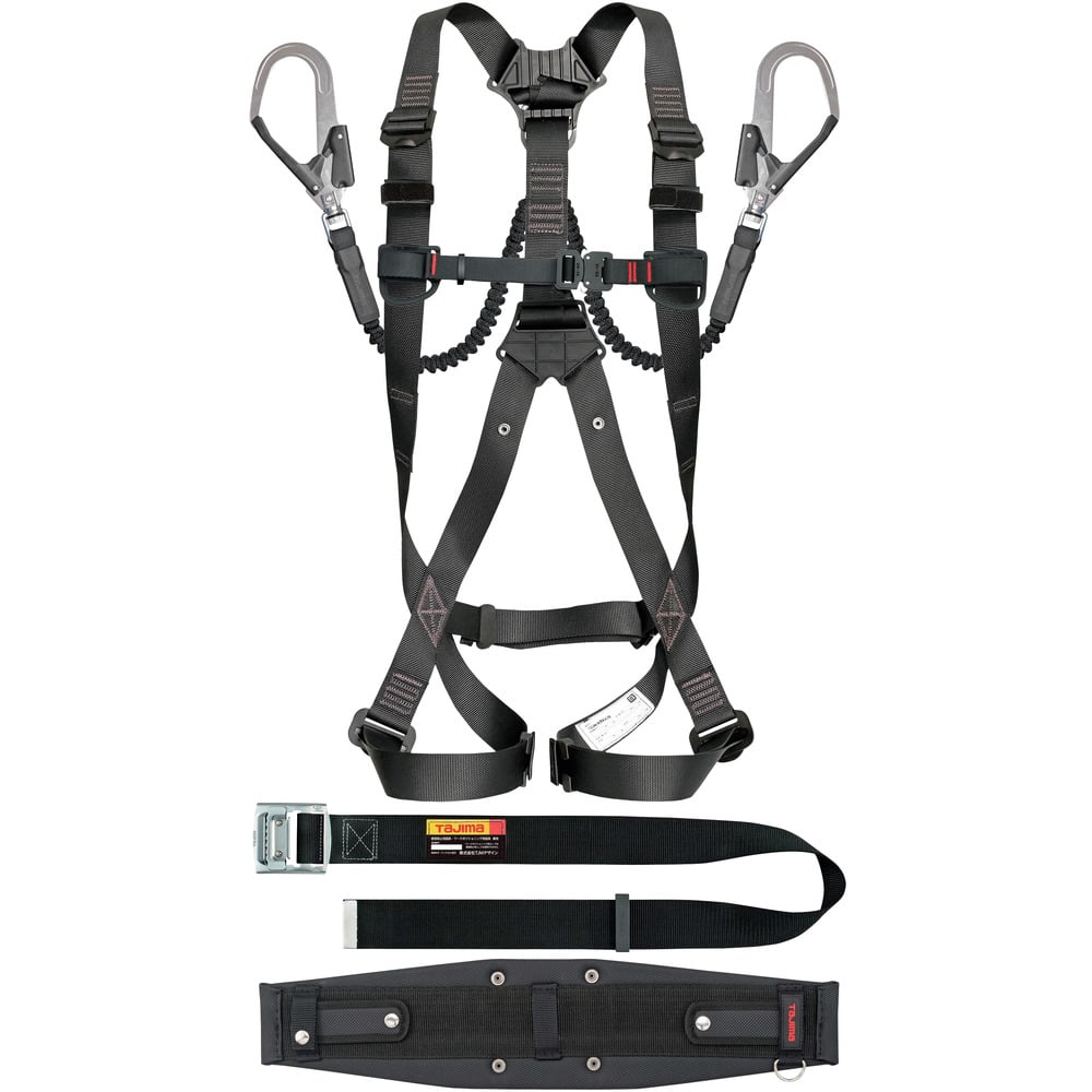 ●新規格対応SEGハーネス組み合わせセットです。●束縛感が少ないベーシックフィット構造のフルハーネスGSです。●蛇腹式で邪魔にならない、硬質焼入ゲート付スチールL2ダブルフックランヤードです。●アクティブSSA搭載です。●ズレにくいノンスリップ構造、へたらない厚さ1.7cmの剛圧クッション胴当てベルトです。●革手袋でも操作簡単なスチールワンフィンガーバックル仕様です。●LEDセフ着脱式SF351D付きです。●サイズ:S●色:黒●腿バックル:パススルー●胴ベルト幅×長さ(mm):50×1100●ベルト幅(mm):50●フック口開き(mm):50●最大使用可能質量(kg):100●ランヤード寸法幅(mm):16.5●ランヤード寸法長さ(mm):1500●種類:フルハーネス 型用タイプ1●背中ベルト:Y型●腿ベルト::水平型●落下距離(m):4.1●厚生労働省「墜落制止用器具の規格」適合品●種類:フルハーネス 型用タイプ1●第一種ショックアブソーバー付●背中ベルト:Y型●腿ベルト:水平型●最大自由落下距離:2.3m●落下距離:4.1m 質量3240g