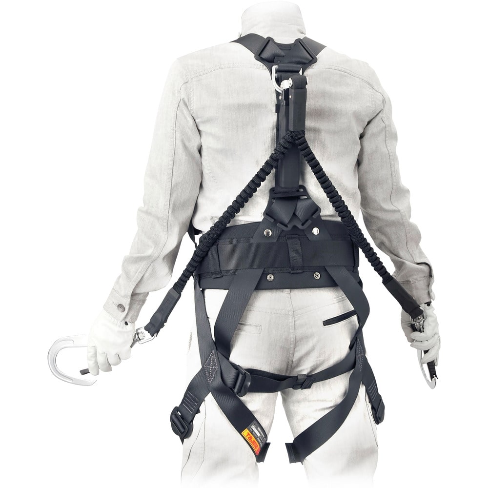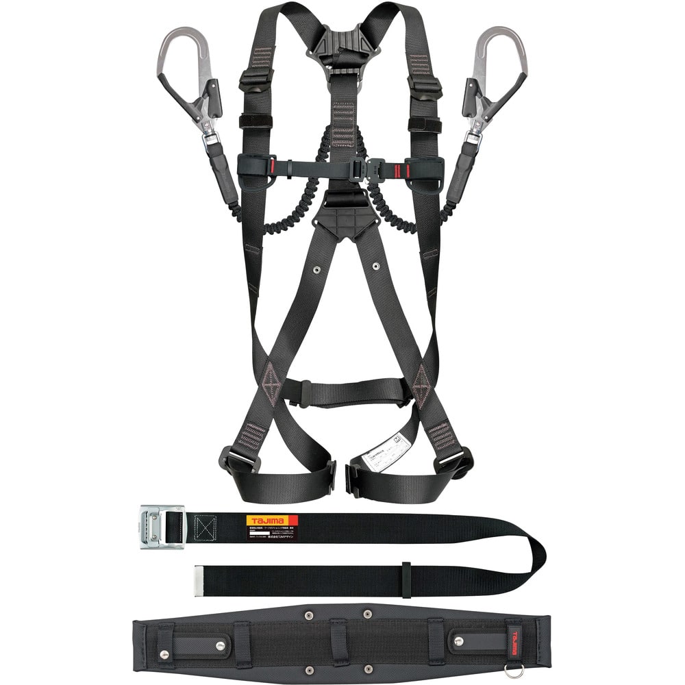 ●新規格対応SEGハーネス組み合わせセットです。●束縛感が少ないベーシックフィット構造のフルハーネスGSです。●蛇腹式で邪魔にならない、硬質焼入ゲート付スチールL2ダブルフックランヤードです。●アクティブSSA搭載です。●ズレにくいノンスリップ構造、へたらない厚さ1.7cmの剛圧クッション胴当てベルトです。●革手袋でも操作簡単なスチールワンフィンガーバックル仕様です。●LEDセフ着脱式SF351D付きです。●サイズ:M●色:黒●腿バックル:パススルー●胴ベルト幅×長さ(mm):50×1250●ベルト幅(mm):50●フック口開き(mm):50●最大使用可能質量(kg):100●ランヤード寸法幅(mm):16.5●ランヤード寸法長さ(mm):1500●種類:フルハーネス 型用タイプ1●背中ベルト:Y型●腿ベルト::水平型●落下距離(m):4.1●厚生労働省「墜落制止用器具の規格」適合品●種類:フルハーネス 型用タイプ1●第一種ショックアブソーバー付●背中ベルト:Y型●腿ベルト:水平型●最大自由落下距離:2.3m●落下距離:4.1m 質量3330g