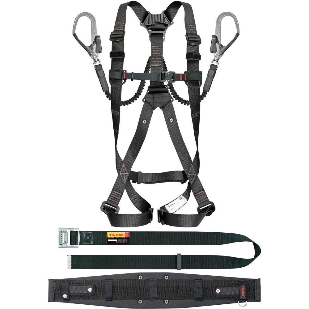 ●新規格対応SEGハーネス組み合わせセットです。●束縛感が少ないベーシックフィット構造のフルハーネスGSです。●蛇腹式で邪魔にならない、硬質焼入ゲート付スチールL2ダブルフックランヤードです。●アクティブSSA搭載です。●ズレにくいノンスリップ構造、へたらない厚さ1.7cmの剛圧クッション胴当てベルトです。●革手袋でも操作簡単なスチールワンフィンガーバックル仕様です。●LEDセフ着脱式SF351D付きです。●サイズ:L●色:黒●腿バックル:パススルー●胴ベルト幅×長さ(mm):50×1450●ベルト幅(mm):50●フック口開き(mm):50●最大使用可能質量(kg):100●ランヤード寸法幅(mm):16.5●ランヤード寸法長さ(mm):1500●種類:フルハーネス 型用タイプ1●背中ベルト:Y型●腿ベルト::水平型●落下距離(m):4.1●厚生労働省「墜落制止用器具の規格」適合品●種類:フルハーネス 型用タイプ1●第一種ショックアブソーバー付●背中ベルト:Y型●腿ベルト:水平型●最大自由落下距離:2.3m●落下距離:4.1m 質量3410g
