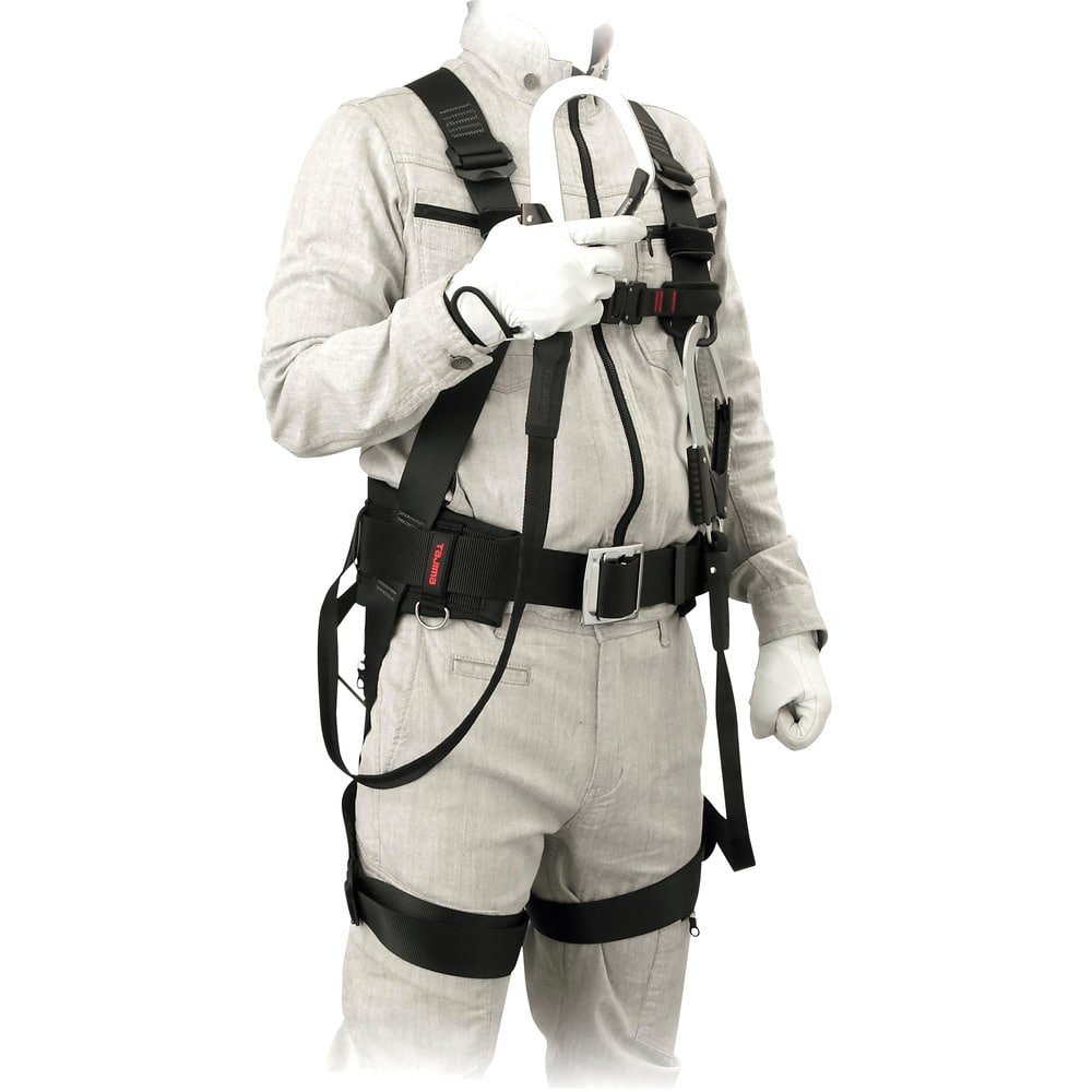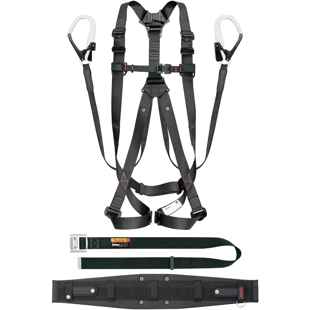 ●新規格対応SEGハーネス組み合わせセットです。●束縛感が少ないベーシックフィット構造のフルハーネスGSです。●上部でしなやか平ロープ 耐久性の高いスチールL1ダブルフックランヤードです。●アクティブSSA搭載です。●ズレにくいノンスリップ構造、へたらない厚さ1.7cmの剛圧クッション胴当てベルトです。●革手袋でも操作簡単なスチールワンフィンガーバックル仕様です。●サイズ:L●色:黒●腿バックル:パススルー●胴ベルト幅×長さ(mm):50×1450●ベルト幅(mm):50●フック口開き(mm):50●最大使用可能質量(kg):100●ランヤード寸法幅(mm):16.5●ランヤード寸法長さ(mm):1500●種類:フルハーネス 型用タイプ1●背中ベルト:Y型●腿ベルト::水平型●落下距離(m):4.1●厚生労働省「墜落制止用器具の規格」適合品●種類:フルハーネス 型用タイプ1●第一種ショックアブソーバー付●背中ベルト:Y型●腿ベルト:水平型●最大自由落下距離:2.3m●落下距離:4.1m 質量3050g