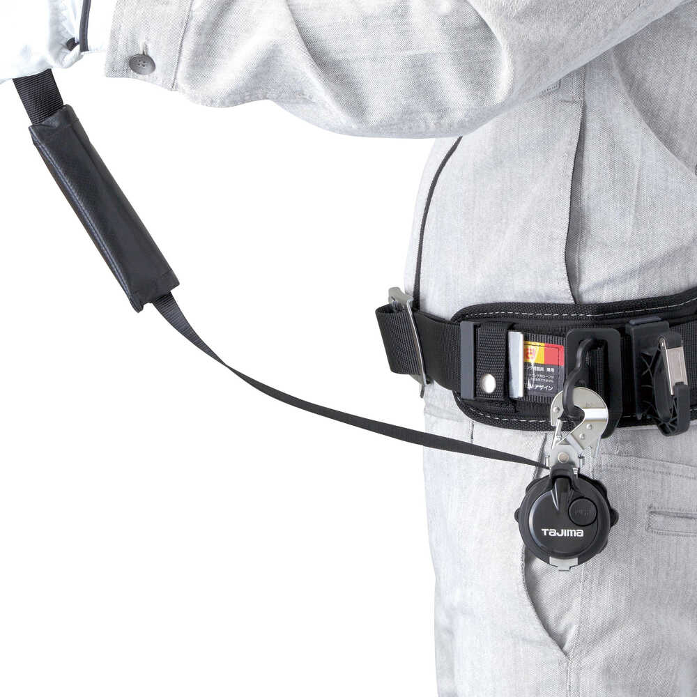 ●ベルト装着スペースわずか4cm(D環止め(2穴)使用時)です。●邪魔にならない小型巻取器(直径57mm)です。●ちょい掛けフックホルダーを採用しています。●色:黒●フック口開き(mm)人体側:9●フック口開き(mm)構造物側:55●フックタイプ:L1(高耐久スチール)●最大使用可能質量(kg):100●長さ(mm):1500●フック:L1(高耐久スチール)●ランヤード寸法幅(mm):16.5●ランヤード寸法長さ(mm):1500●種類:胴ベルト型●ロック装置:なし●ショックアブソーバ 種別:第一種(4kN)●落下距離(m):2.7●最大自由落下距離(m):1.8●種類:胴ベルト型●ロック装置:なし●ショックアブソーバ 種別:第一種(4kN)●最大自由落下距離:1.8m●落下距離:2.7m 質量820g