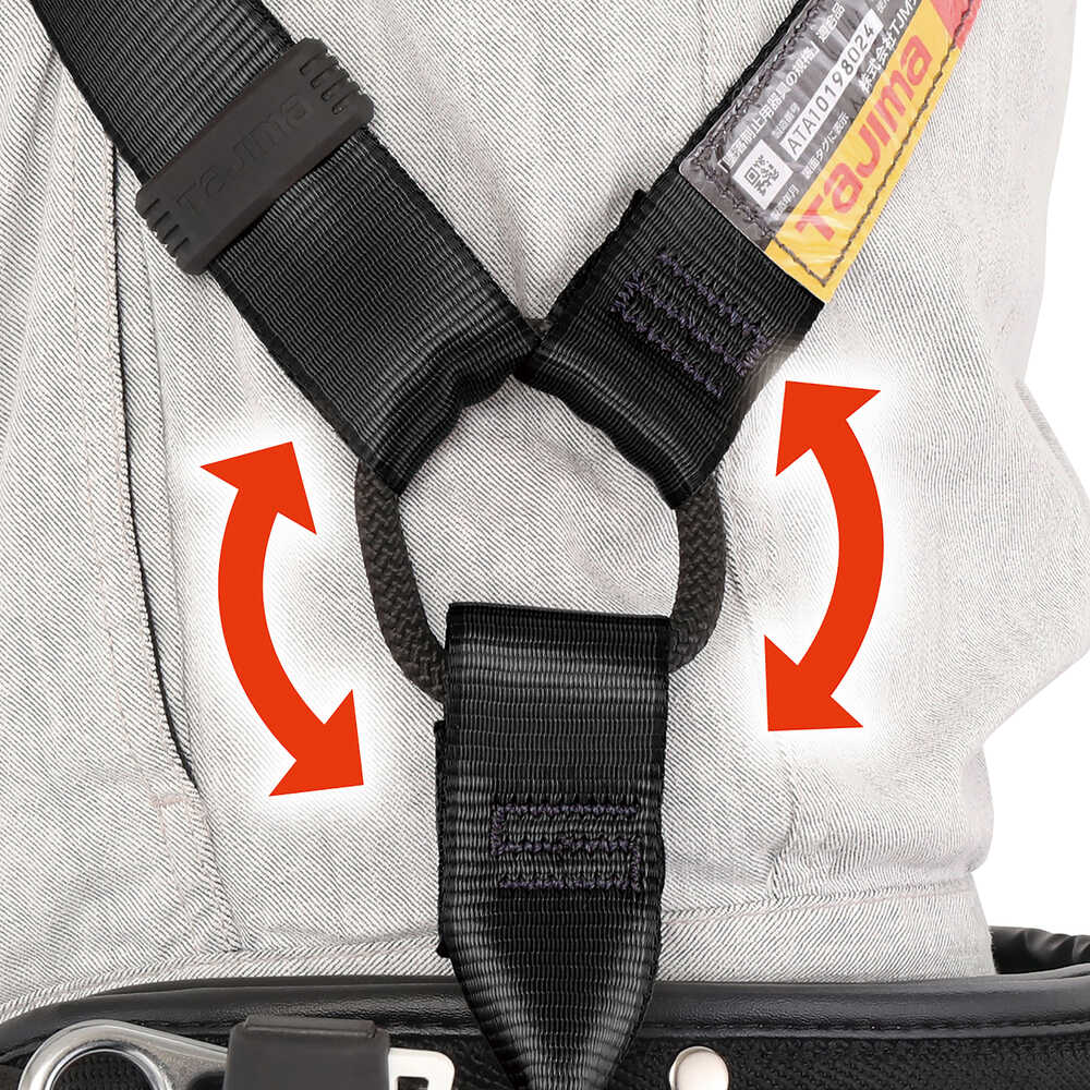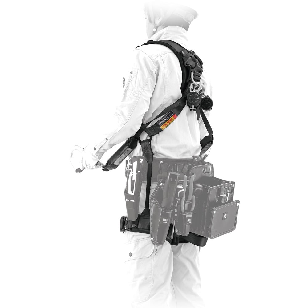 ●快適性と装着性、軽さにとことんこだわったハイスペックモデル●腰道具を付けたまま脱ぎ着ができます。ハーネスを使う時に胴ベルトを外す必要がありません。●軽量で操作性抜群のアルミワンタッチバックル仕様です。●形が崩れず脱ぎ着しやすい肩・背中パッド/腿パッドを標準装備です。●スマートパス構造:腰道具の上を通るベルトが細幅仕様になっているので、腰道具の隙間にベルトを逃がすことができます。●フィット性に優れたソフトクッション採用です。●サイズ:フリーサイズ●色:黒●腿バックル:ワンタッチ●ベルト幅(mm):41●最大使用可能質量(kg):100●製品重量(g):1250●包装形式:クリアケース●包装寸法タテ(mm):280●包装寸法ヨコ(mm):170●包装寸法オクユキ(mm):155●種類:フルハーネス型●肩・背中/腿パッド付●腿バックル:着脱が容易な、軽量アルミ製腿ワンタッチバックル●付属パッド:フィット性に優れたソフトクッション採用 質量1250g