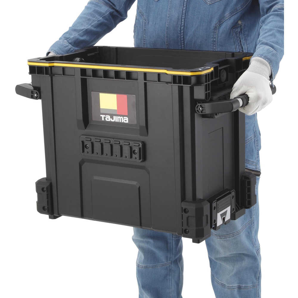 ●バスケット型ツールボックスです。●内側・外側にセフホルダー機能を搭載しています。(36個)●腰周りの「着脱セフ」商品や電動工具、資材なども収納できる大容量仕様です。●重ねて置くだけでしっかり連結する荷崩れ防止仕様です。●セフホルダー機能:36個●色:黒●外形寸法(mm)間口:511●外形寸法(mm)奥行:325●外形寸法(mm)高さ:421●有効内寸(mm)間口:410●有効内寸(mm)奥行:270●有効内寸(mm)高さ:400●最大荷重(kg):50●内寸H(mm):400●最大積載重量:50kg 質量4500g