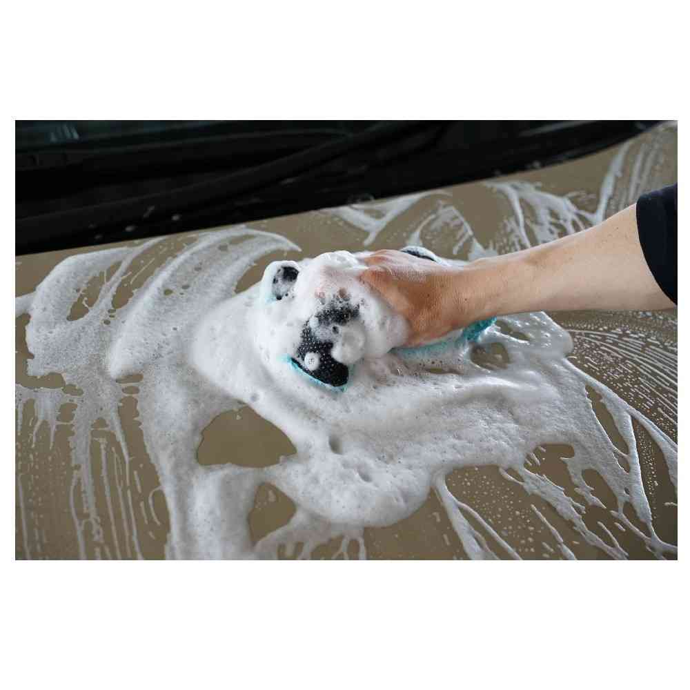 ザク切りスポンジをぎっしり詰め込んだ新世代洗車スポンジ ◆ザク切りスポンジが入った新・洗車スポンジ。 ◆豊富な泡立ちで、握りやすく、泡切れも抜群。 ◆洗浄面にはフリース面とメッシュ面を採用。汚れに合わせて使い分けができる。 ◆フリース面でやさしく「なで洗い」コーティング施工車にも使用できる。 ◆メッシュ面でムシ・鳥フンなどを「しっかり洗浄」