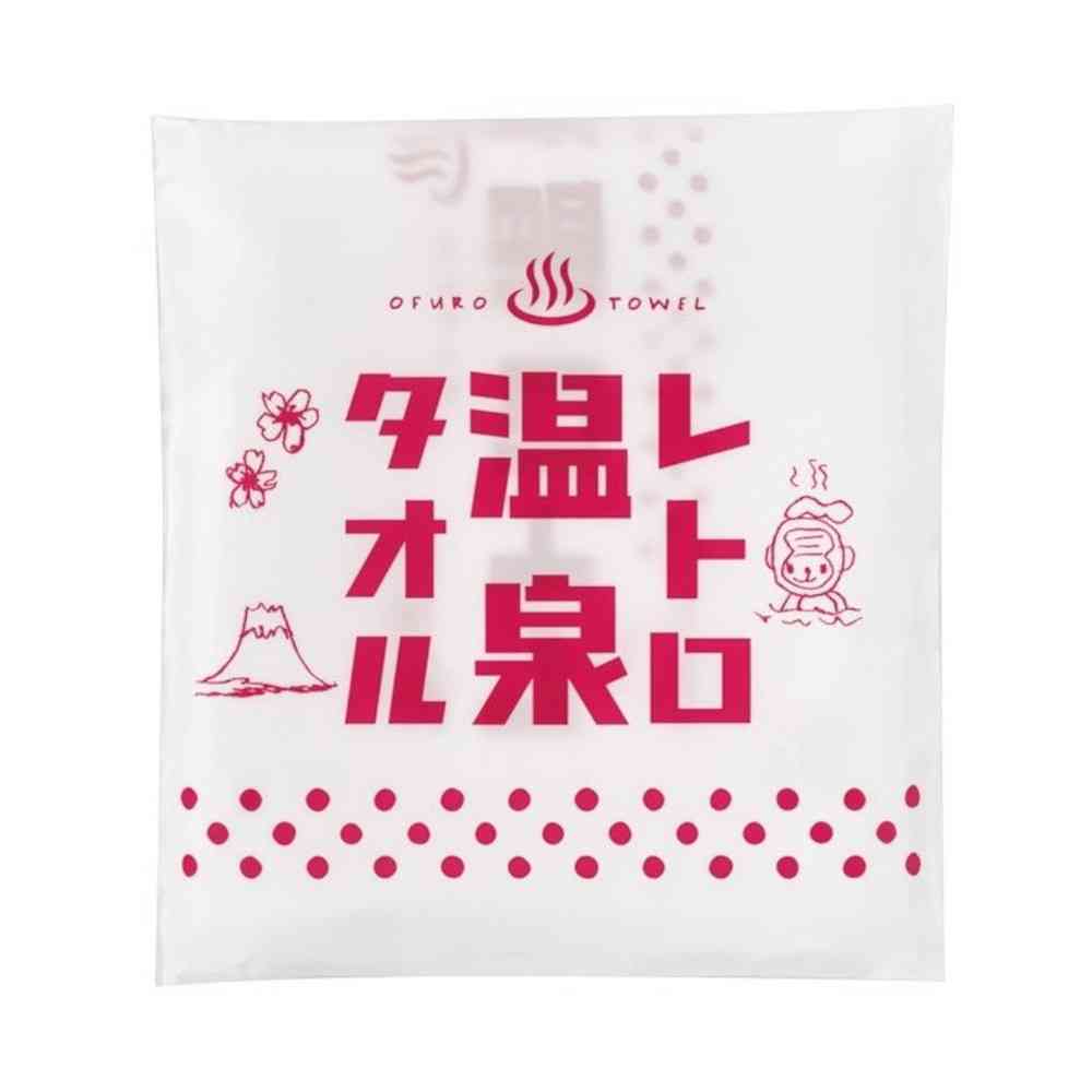 薄手で吸水力があり乾きやすい温泉タオル。 レトロ可愛いテキストがプリントされています。 1枚入りの個包装になっているのでプチギフトにもおすすめです。