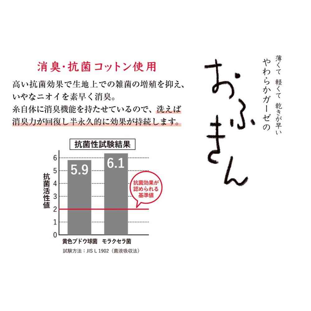 薄くて、軽くて、乾きが早いやわらかガーゼのおふきん。 高い抗菌効果で生地上での雑菌の増殖を抑え、いやなニオイを素早く消臭。 糸自体に消臭機能を持たせているので、洗えば消臭力が回復し半永久的に効果が持続します。