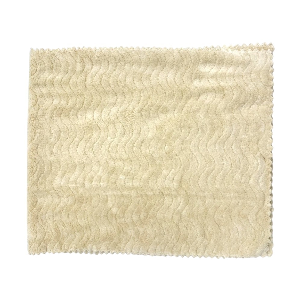 もこもこ吸水マイクロファイバーでマルシェろう!美の女神が忙しい毎日のあなたの味方になって美人髪を育てるお手伝いをします。ドライヤー時間を短縮!「整う」髪へ。ポイント1:特殊な繊維で吸水力UP。超極細繊維で洗髪後の水分をすばやく吸水!ポイント2:抗菌・防臭加工。毎日使うものだから、いつも清潔!ポイント3:やさしい手触り。カットパイル仕上げで髪に優しくお肌あたりもなめらか。ウェーブ柄の凹凸でふんわり軽く、しっかり手指にフィット!つかみやすいから髪がしっかりふきやすい。生地の四方は、軽く仕上げる方法で糸を使わずに熱でカット。波柄カットなので、なめらかえほつれにくい仕様です。