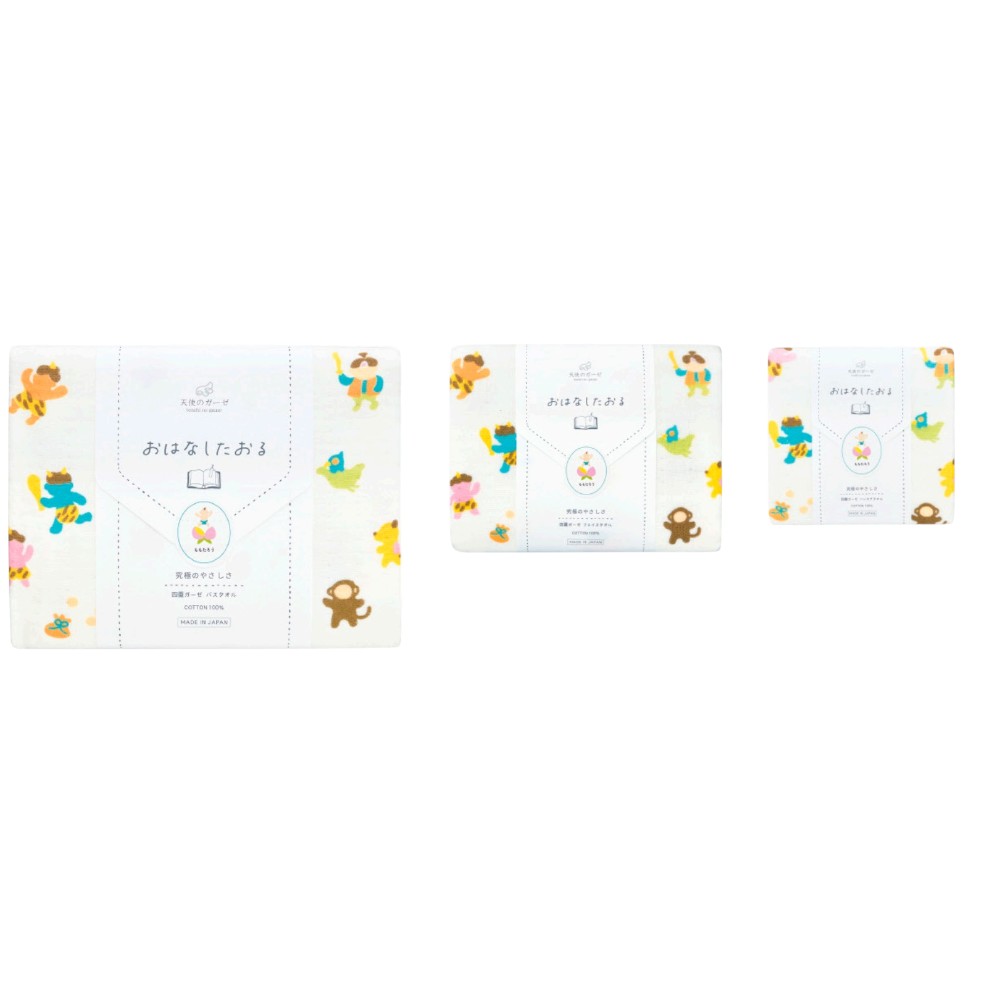 究極のやさしさ。触れたその時、すべてが判ります。柔らかさ、心地良さ、やさしさ。 包み込まれるような心地良さと幸福感は、天使のような赤ちゃんの肌に触れ、自然と笑顔がこぼれる時と同じ感覚が得られます。 天地からの恵み、綿の繊細さ、やさしさを極めたガーゼタオルです。 みんなが大好きな童話やむかし話がタオルになりました。 ベビーも大人もよろこぶ、ふんわりやわらかな肌ざわりです。ふわふわガーゼをやわらかガーゼで包み込んだ、やさしい肌ざわりのタオルです。 繊細なお肌にも気持ち良い、ずっと触れていたくなる心地よさです。