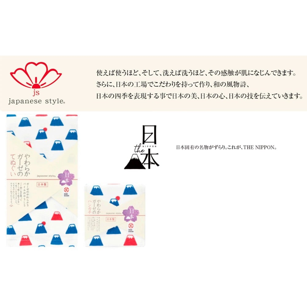 使えば使うほど、そして、洗えば洗うほど、その感触が肌になじんできます。さらに、日本の工場でこだわりを持って作り、和の風物詩、日本の四季を表現する事で日本の美、日本の心、日本の技を伝えていきます。