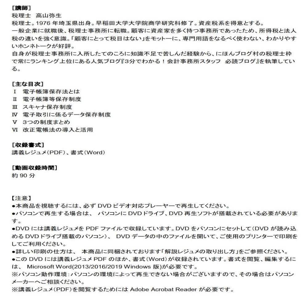 DVD これだけは押さえておきたい 改正電子帳簿保存法と企業の実務対応 V159決算書、請求書などの帳簿書類の保存への影響大! 「業務のデジタル化」への意識が高まる中、改正電子帳簿保存法がいま注目を集めています。本DVDでは、改正電子帳簿保存法とはどのようなものであり、今回の改正へ準拠するためにどのようなこと行い、実務上なにが必要であるのかを解説していきます。